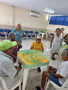 “A ideia surgiu da percepção da equipe diante das dificuldades identificadas [visual, motora, cognitiva e de socialização] dos idosos que nós atendemos aqui no Cecon. Planejamos atividades para que eles trabalhem juntos, cooperando uns com os outros. São exercícios lúdicos adaptados para a pessoa idosa, que estimulam a memória recente, a lateralidade e a autonomia deles”, explica a educadora social Daniele Nunes, uma das responsáveis pelo grupo. “O foco é proporcionar a eles mais qualidade de vida”, frisa.