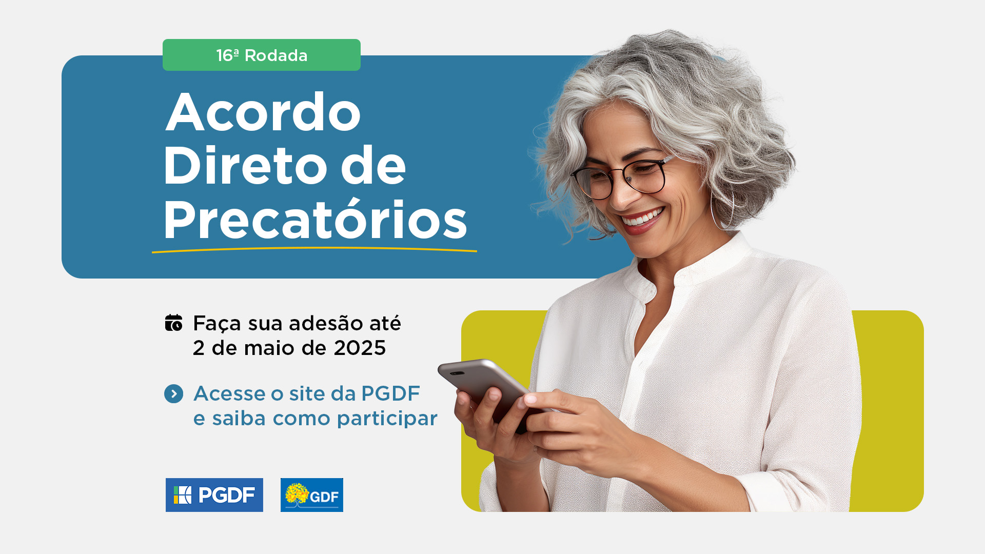 A Procuradoria-Geral do Distrito Federal (PGDF) iniciou, nesta segunda-feira (31/3), a 16ª rodada para pagamentos de precatórios emitidos exclusivamente pelo Tribunal de Justiça do Distrito Federal e Territórios (TJDFT) contra o Distrito Federal, suas autarquias, fundações e entidades da administração indireta. Podem participar titulares de precatórios que tenham sido expedidos até o dia 2 deste mês.