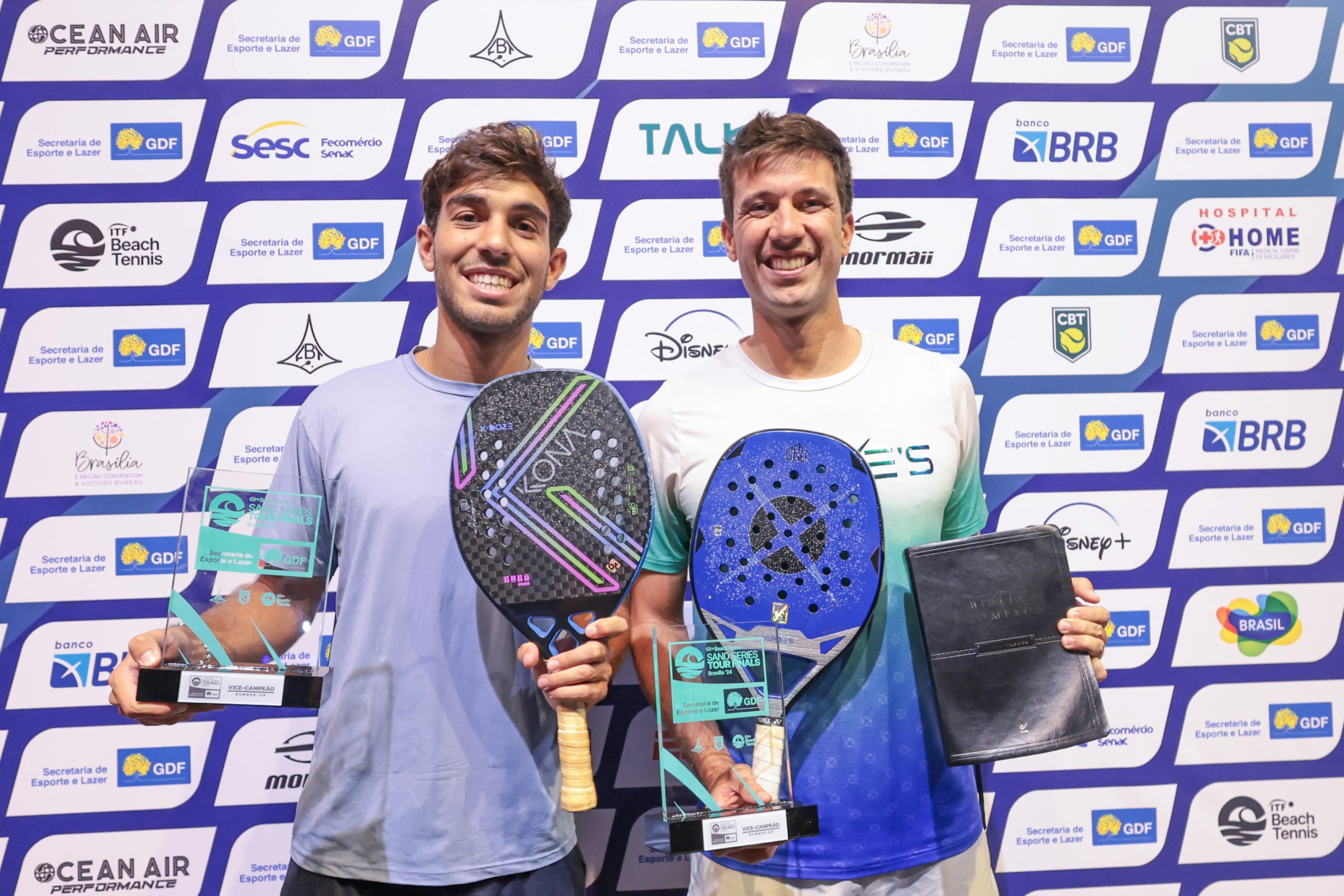 O italiano Mattia Spoto e o francês Nicolas Gianotti conquistaram, neste sábado (7), o primeiro lugar na final masculina da primeira edição do ITF Beach Tennis Finals, na Arena BRB Nilson Nelson | Fotos: Marcelo Zambrana