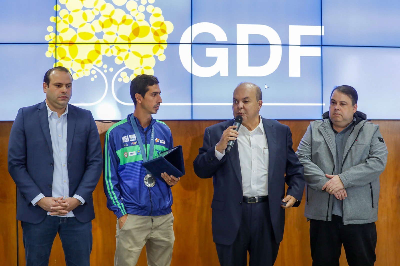 “Nós temos trabalhado com as nossas secretarias, em especial Esporte e Lazer e Educação, para incentivar cada vez mais os esportes no DF”, declarou o governador. “Desde 2019, a gente vem fazendo um grande investimento, reformando todos os campos sintéticos, fazendo entrega de material esportivo para a criançada; e ter a oportunidade de ter um medalhista do nível do Caio aqui da nossa cidade nos deixa muito felizes.”