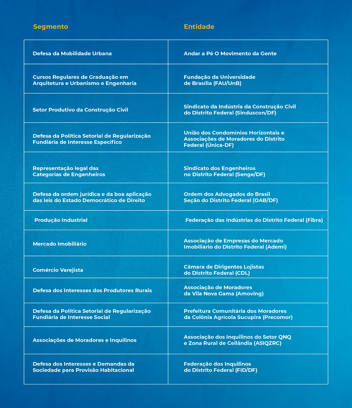 “Esse é um momento extremamente importante para o DF, em que se homologa a representação da sociedade civil na discussão do planejamento do território”, afirmou Marcelo Vaz. “É um momento de composição, em que a sociedade precisa estar junta e organizada, para conseguirmos, de mãos dadas com o poder público, avançar nas políticas públicas no DF.”