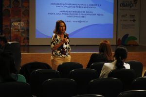 A palestra da psicóloga e professora Amaralina de Souza abordou reflexões pouco comentadas acerca da atuação pedagógica, como, por exemplo, o auxílio oferecido às crianças que passam por internações prolongadas no âmbito educacional | Foto: Felipe Domingues/HCB