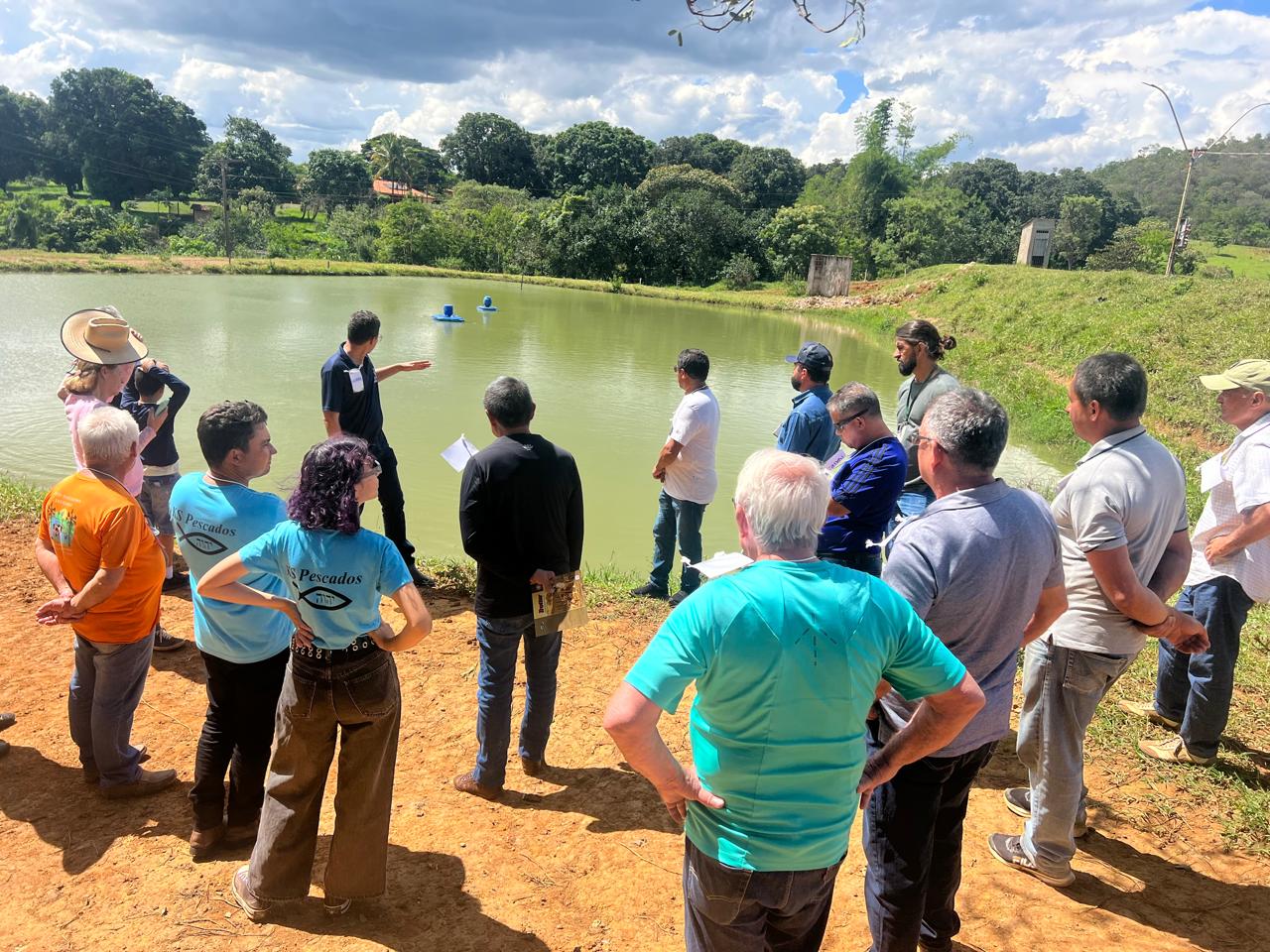 Durante a visita técnica às instalações da Piscicultura Olimpo, os participantes tiveram a oportunidade de conhecer práticas inovadoras e sustentáveis na produção de pescado
