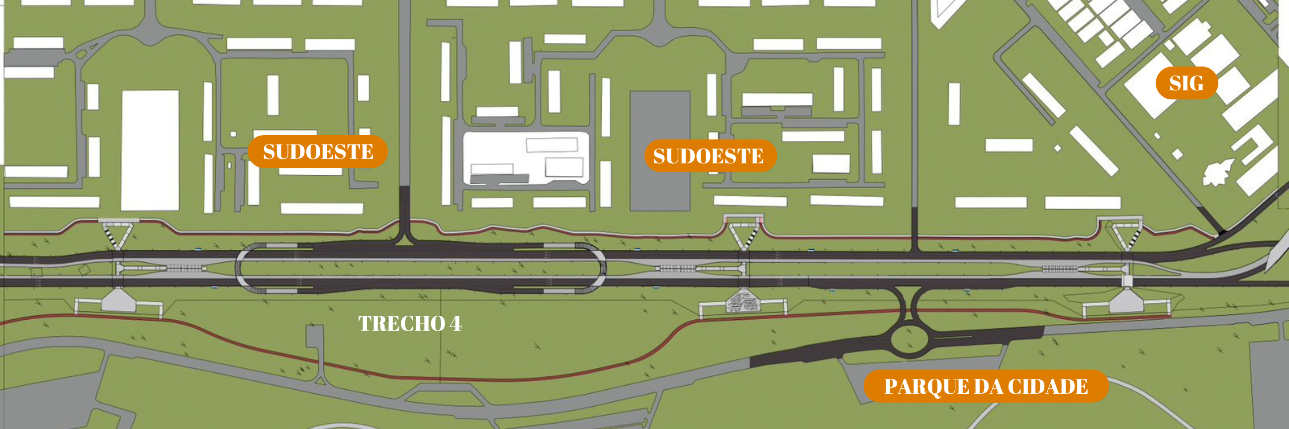 A quarta etapa da grandiosa obra será executada no intervalo entre o viaduto Engenheiro Luiz Carlos Botelho Ferreira e o entroncamento do Setor de Indústrias Gráficas (SIG). Será implantado corredor exclusivo para BRT, dois novos viadutos em trincheira e duas passagens subterrâneas para pedestres – que darão acesso à estação de ônibus no canteiro central da via. Além disso, o trecho vai ganhar ciclovias, obras de drenagem, pavimentação, sinalização, paisagismo, calçadas e mobiliário urbano.