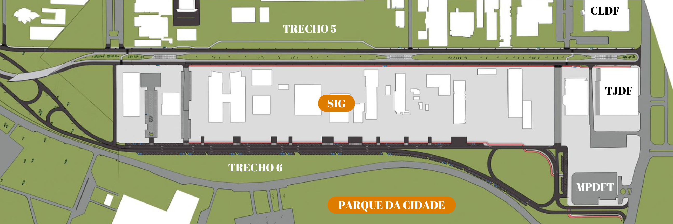 O primeiro trecho, situado entre os viadutos da Estrada Parque Indústria e Abastecimento (Epia) e do Setor Policial Sul, abrange a implantação da pista do BRT, a construção de dois novos viadutos, instalação de ciclovias, obras de drenagem, pavimentação, sinalização, paisagismo, calçadas e mobiliário urbano.