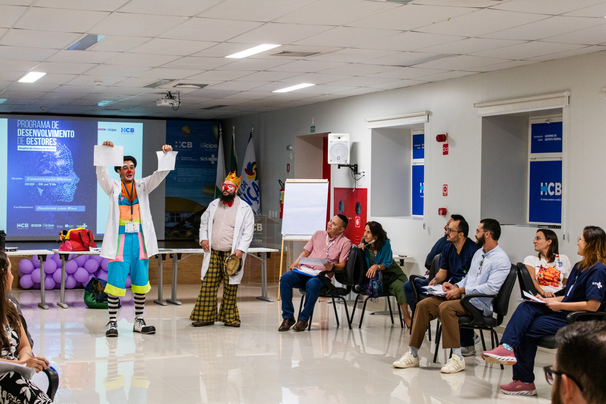 Gestores do Hospital da Criança de Brasília José Alencar (HCB) participaram de uma capacitação, no Auditório Oscar Moren. O módulo Comunicação Efetiva integra o Programa de Desenvolvimento de Gestores. A ação foi organizada pela Gerência de Recursos Humanos do HCB em parceria com voluntários da Associação Brasileira de Assistência às Famílias de Crianças Portadoras de Câncer e Hemopatias (Abrace). Foram usadas técnicas de palhaçaria na abordagem de temas delicados presentes no cotidiano das relações de trabalho e nos processos de gestão.