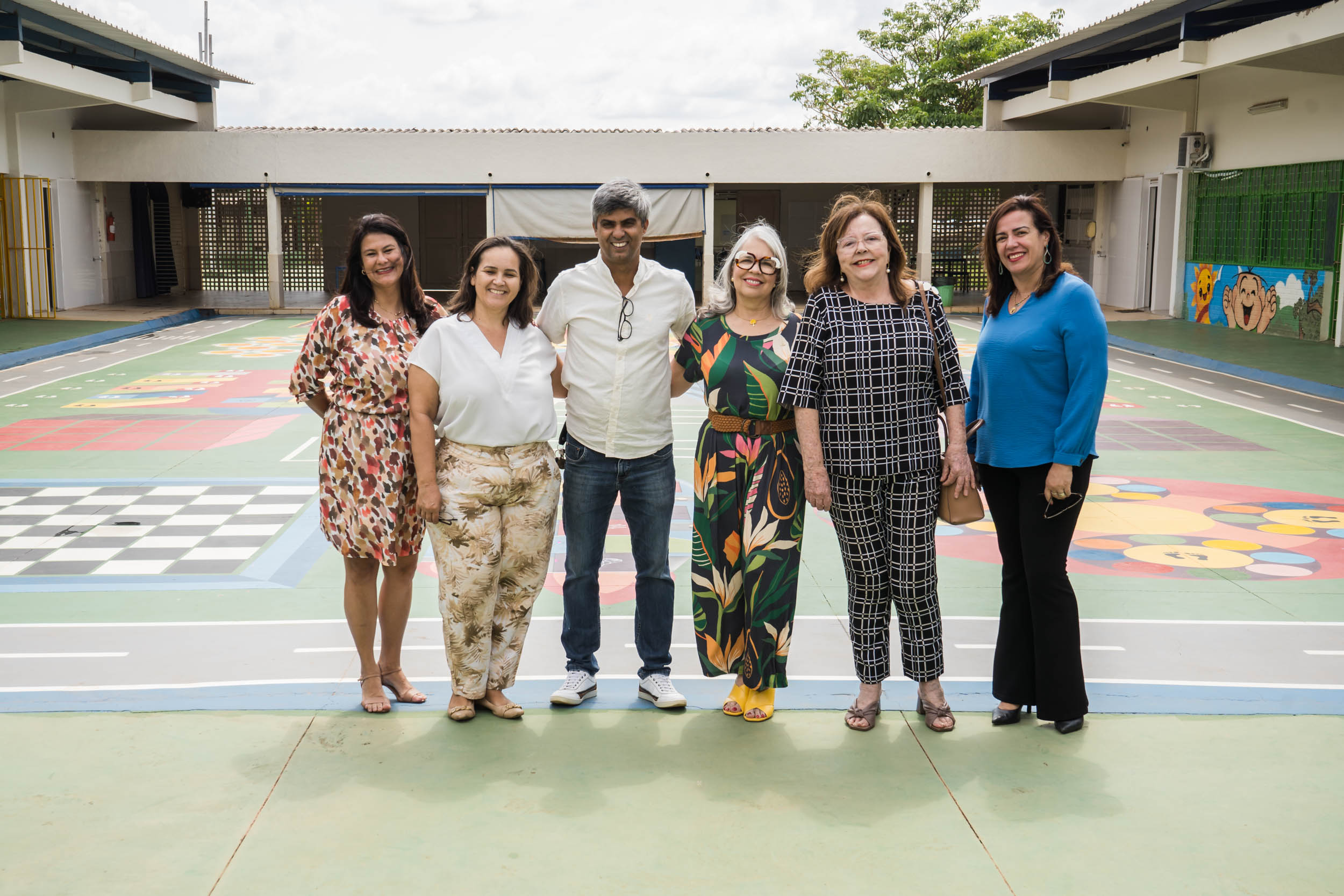 A Escola Bilíngue Libras e Português Escrito de Taguatinga celebrou, nesta quarta-feira (16), a conclusão das obras na unidade, que incluíram a reforma dos banheiros, troca do piso, pintura e intervenções artísticas no pátio. A secretária de Educação do Distrito Federal, Hélvia Paranaguá, e a subsecretária de Educação Inclusiva e Integral (Subin), Vera Barros, visitaram a instituição pela manhã junto do coordenador da Regional de Ensino de Taguatinga, Murilo Marconi.