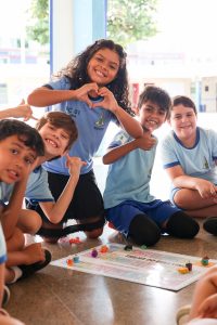 A professora do 3º ano C, Tiffany Carvalho, desenvolveu ações inclusivas para tratar sobre diferentes formas de bullying. O projeto chamado Paz nas Escolas integra várias dinâmicas – uma delas é a Trilha do Bullying, na qual os estudantes assimilam, por meio de um jogo de tabuleiro, formas de gerar gentileza, explicam sobre o bullying psicológico, social, cyberbullying e aprendem como pedir desculpas.