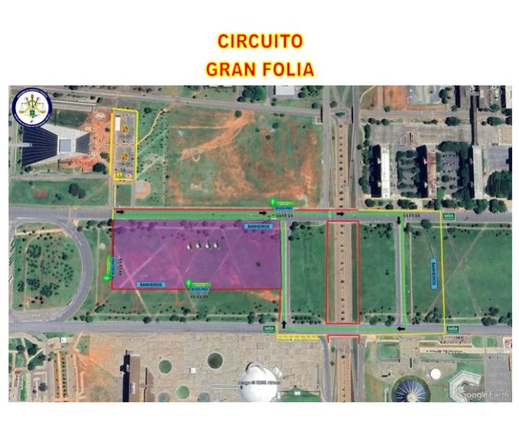 • Esplanada dos Ministérios: entre os dias 1º e 4 de março, as vias S1 e N1 e a Esplanada dos Ministérios estarão fechadas das 11h às 2h. A circulação será retomada diariamente das 2h às 11h.