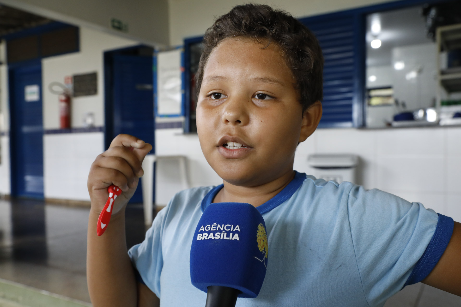 Aluno da unidade, Isaac Veras, de 9 anos, explicou com maestria tudo que absorveu durante a ação: “Hoje a gente aprendeu sobre escovação, não comer muito doce no dia a dia e, sempre que finalizar uma refeição, escovar os dentes. E não é para escovar de qualquer jeito, é dez vezes em um lugar, depois passa para o outro e escova dez vezes também”. Ele acrescentou, ainda, que está pronto para levar todas as informações para casa e repassar para a família. “Eu vou levar um bom conhecimento para minha mãe, para o meu avô e para a minha avó também”.