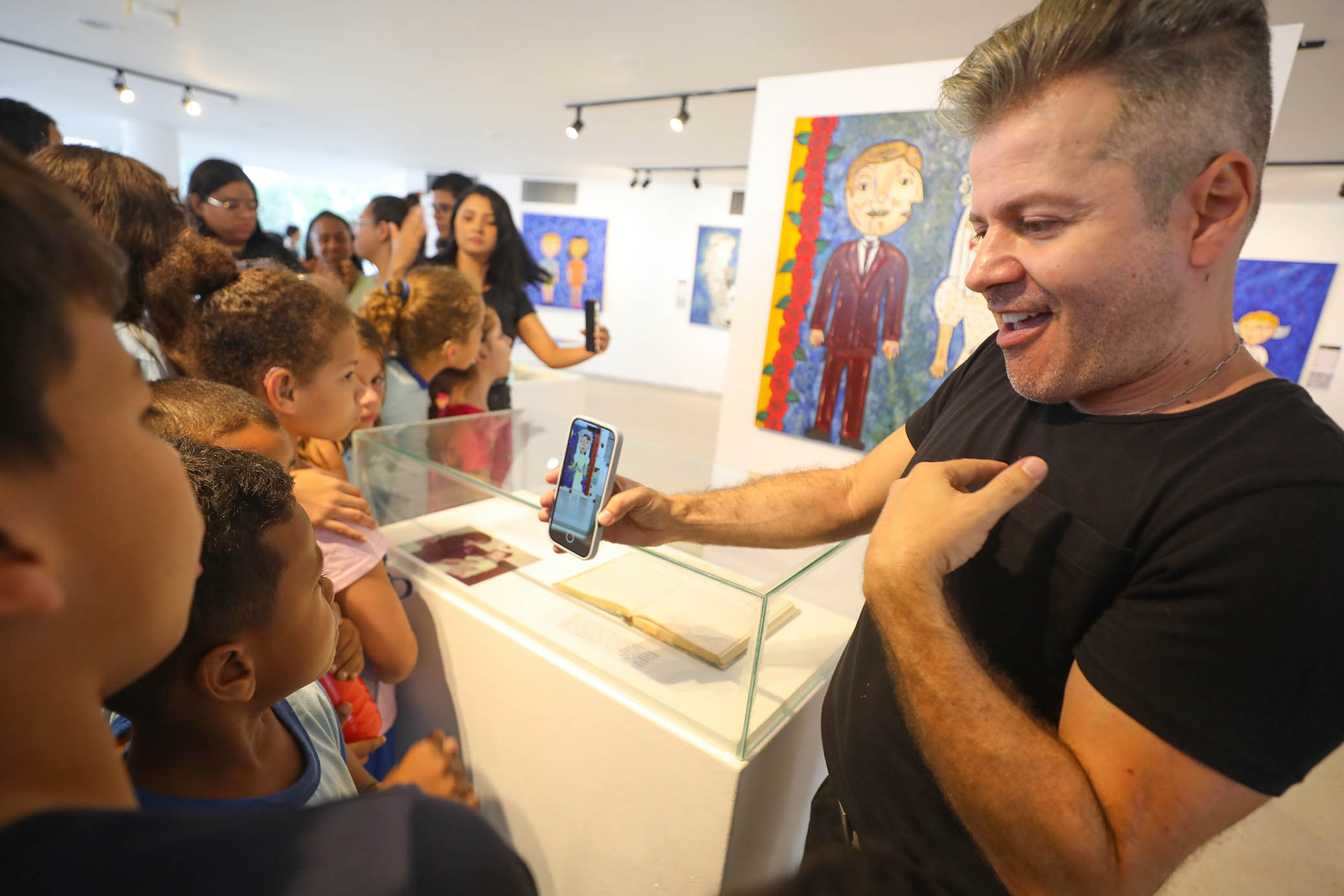 Com transporte e acesso gratuito ao equipamento público, os estudantes admiraram empolgados as obras. Diversos quadros possuíam tecnologia interativa pela câmera do celular, o que deixou tudo ainda mais dinâmico, além das interações com a escola e o artista. Já tendo marcado presença em mostras nacionais, na Espanha e nos Estados Unidos, Marcos é o primeiro artista surdo a formar-se em arquitetura no Brasil.