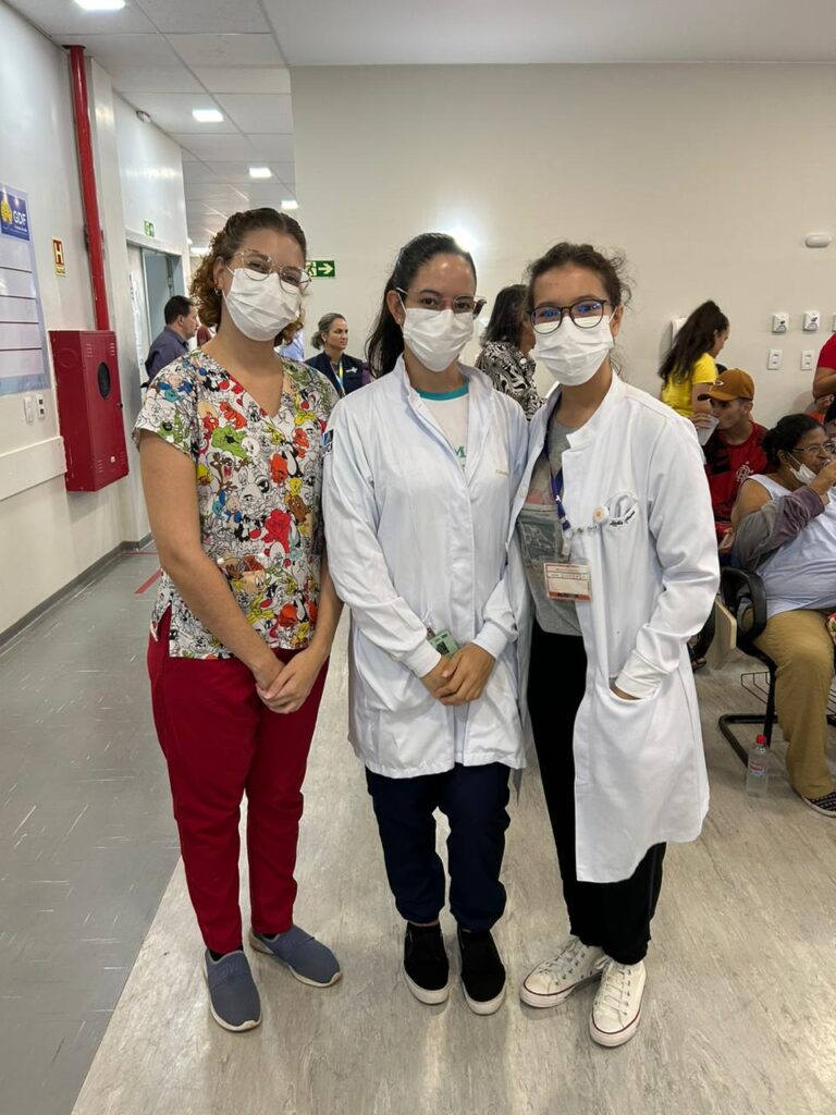 A Fundação de Ensino e Pesquisa em Ciências da Saúde (Fepecs), por meio da Escola Superior de Ciências da Saúde (Escs), promoveu a inscrição de alunos do 2º ao 6º ano de medicina e do 2º ao 4º ano de enfermagem como voluntários nas tendas e no Hospital de Campanha (HCamp) montados para receber pacientes com dengue. Além disso, foi desenvolvida uma sala virtual, em que os voluntários têm acesso a informações sobre a doença, boletins epidemiológicos e manuais produzidos pelo Ministério da Saúde (MS).