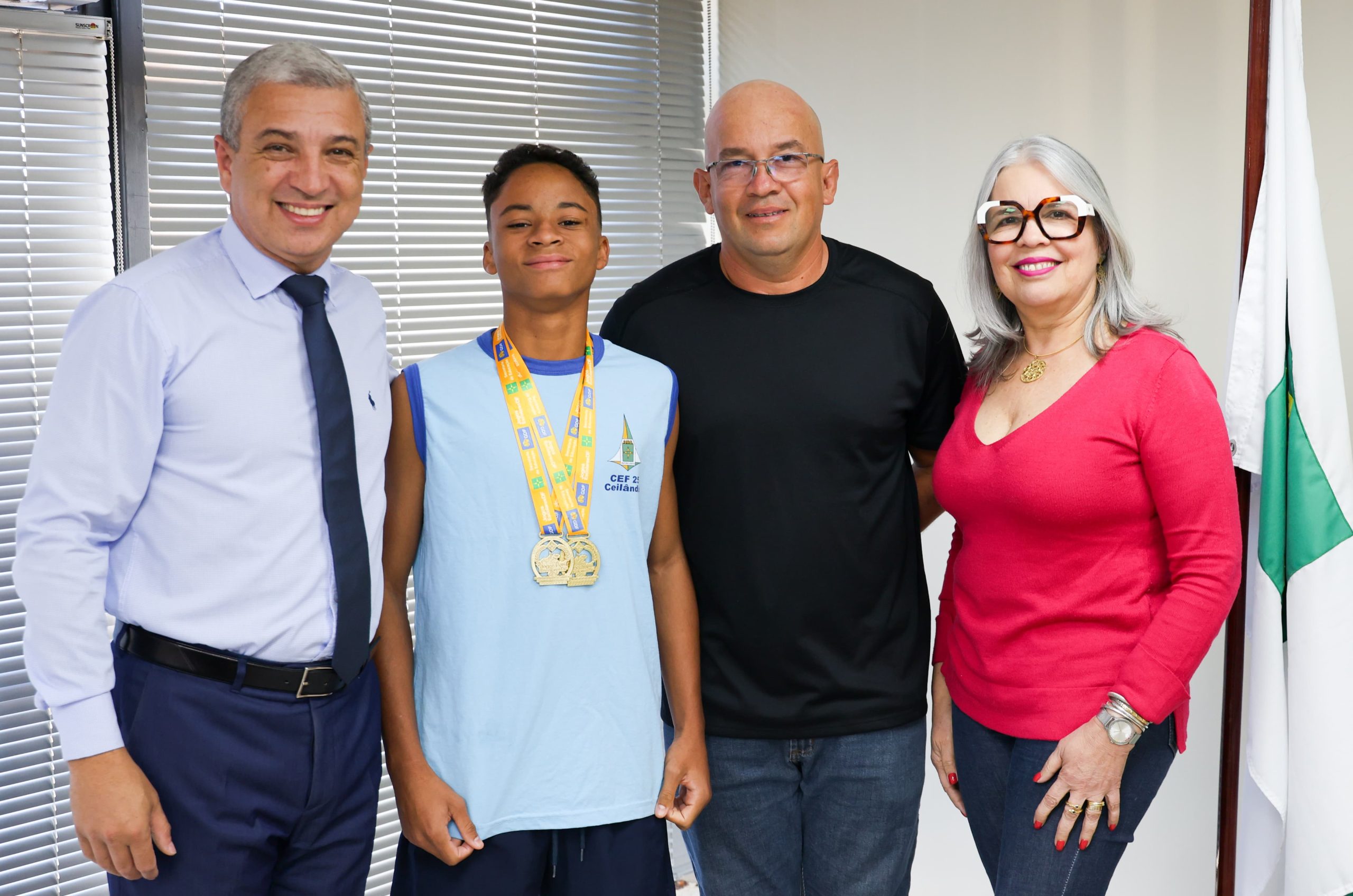 Antes de embarcar para os JEBS, Michael Brian e o pai Bruno Silveira, visitaram o secretário executivo da SEEDF, Isaias Aparecido, e a secretária de Educação do DF, Hélvia Paranaguá | Fotos: Felipe de Noronha / Ascom SEEDF