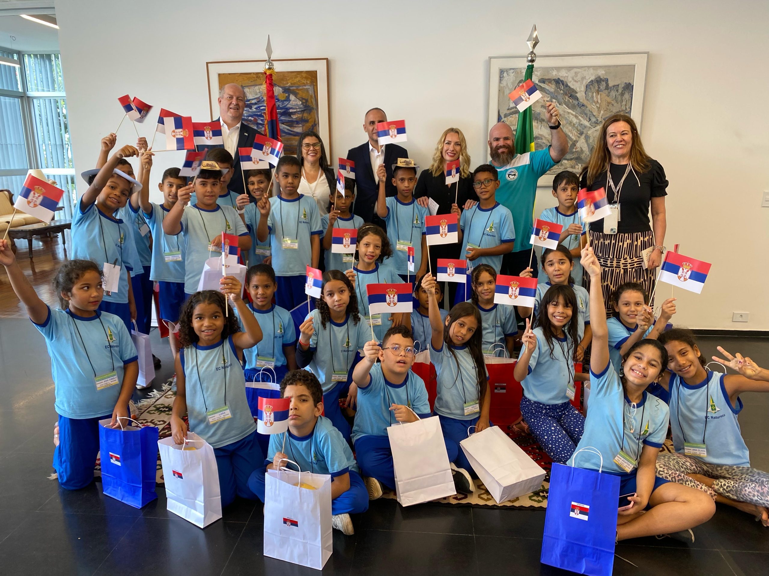 “De tudo, o que eu mais gostei foi aprender a escrever o meu nome em sérvio”, contou o estudante Antônio Elias César da Silva, de 9 anos. “Achei bem fácil e vou ensinar minha mãe e meu irmão de 12 anos quando chegar em casa”, gabou-se. Todos os alunos receberam o abecedário sérvio e a orientação do próprio embaixador Aleksandar Ristić, que fez questão de auxiliar os estudantes na grafia certa dos nomes.