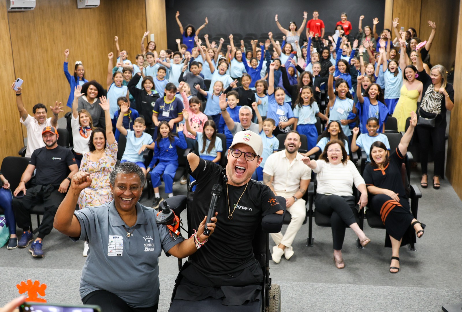 A premiação contou com a participação do piloto do Rally dos Sertões Marcos Grossi, que palestrou sobre sua história de superação e força de vontade | Foto: Felipe de Noronha/SEEDF