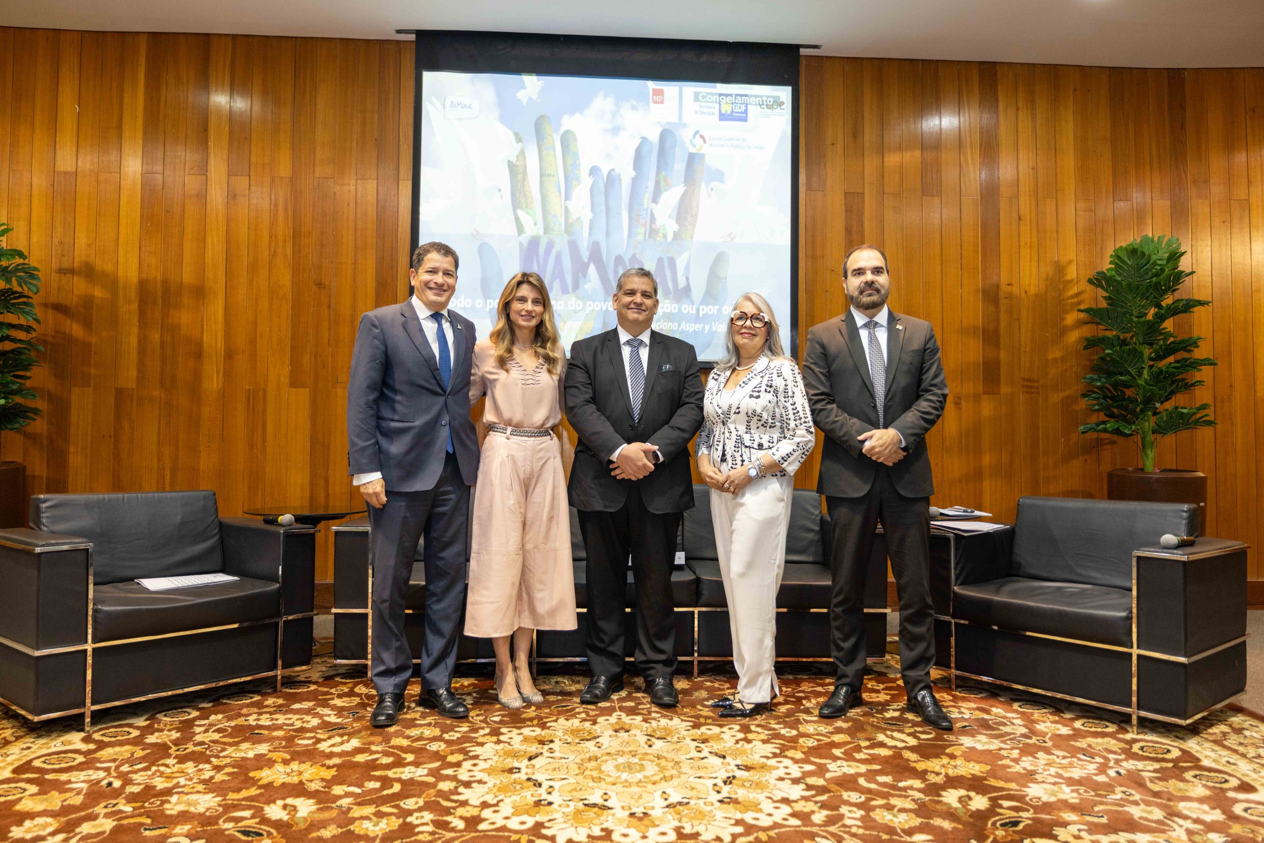 A secretaria de Educação, Hélvia Paranaguá (quarta a partir da esquerda) ressaltou: “Queremos que nossos estudantes aprendam o que é uma educação para a integridade, para se tornarem cidadãos íntegros” | Foto: Ed Ferreira/MPDFT