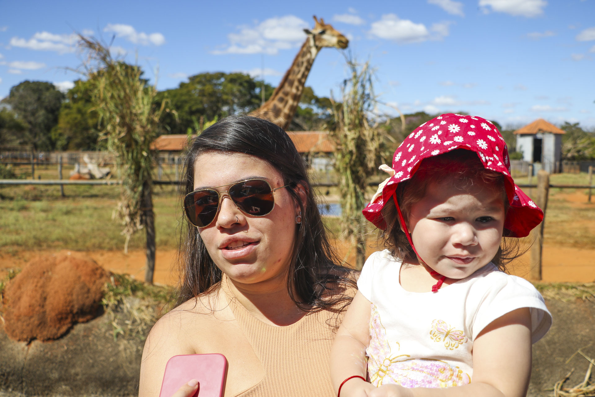 A fisioterapeuta Isabella Soares costuma levar a filha, Ana Liz, ao zoo: “Ela já está naquela fase de conhecer os animais, então é muito legal vê-los ao vivo e a cores” | Fotos: Matheus H. Souza/ Agência Brasília