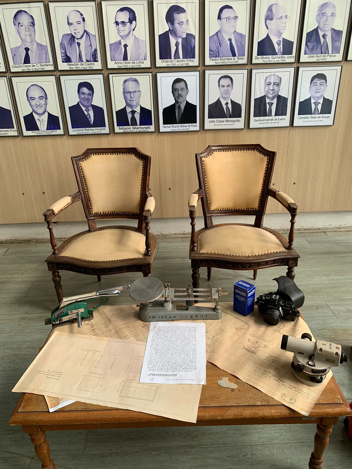 Entre os objetos expostos, destaque para um teodolito, instrumento de precisão óptica que mede ângulos verticais e horizontais; uma calculadora mecânica Facit C1-13 utilizada por trabalhadores daquela época; várias pranchetas de engenharia ainda com desenhos afixados; e uma cadeira usada pelo primeiro presidente da Novacap, Israel Pinheiro.