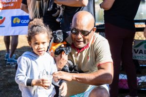 Acompanhado pela filha Aniara, de 4 anos, Alessandro Diniz adotou um novo amigo para a família