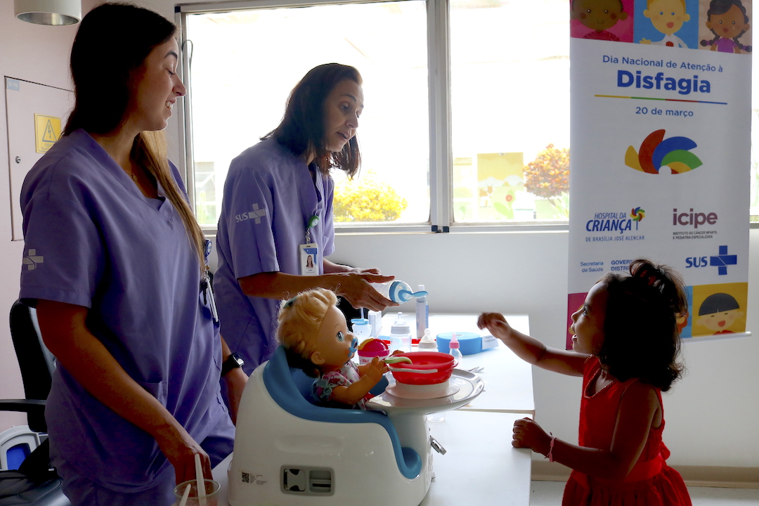 O Hospital da Criança de Brasília José Alencar (HCB) realizou, nesta quarta-feira (20), atividade de conscientização e informação quanto ao Dia Nacional da Atenção à Disfagia. A data alerta para a dificuldade de engolir alimentos, líquidos e saliva. No ambulatório, crianças e adultos conheceram o trabalho da equipe de fonoaudiologia do HCB no acompanhamento a casos da doença.