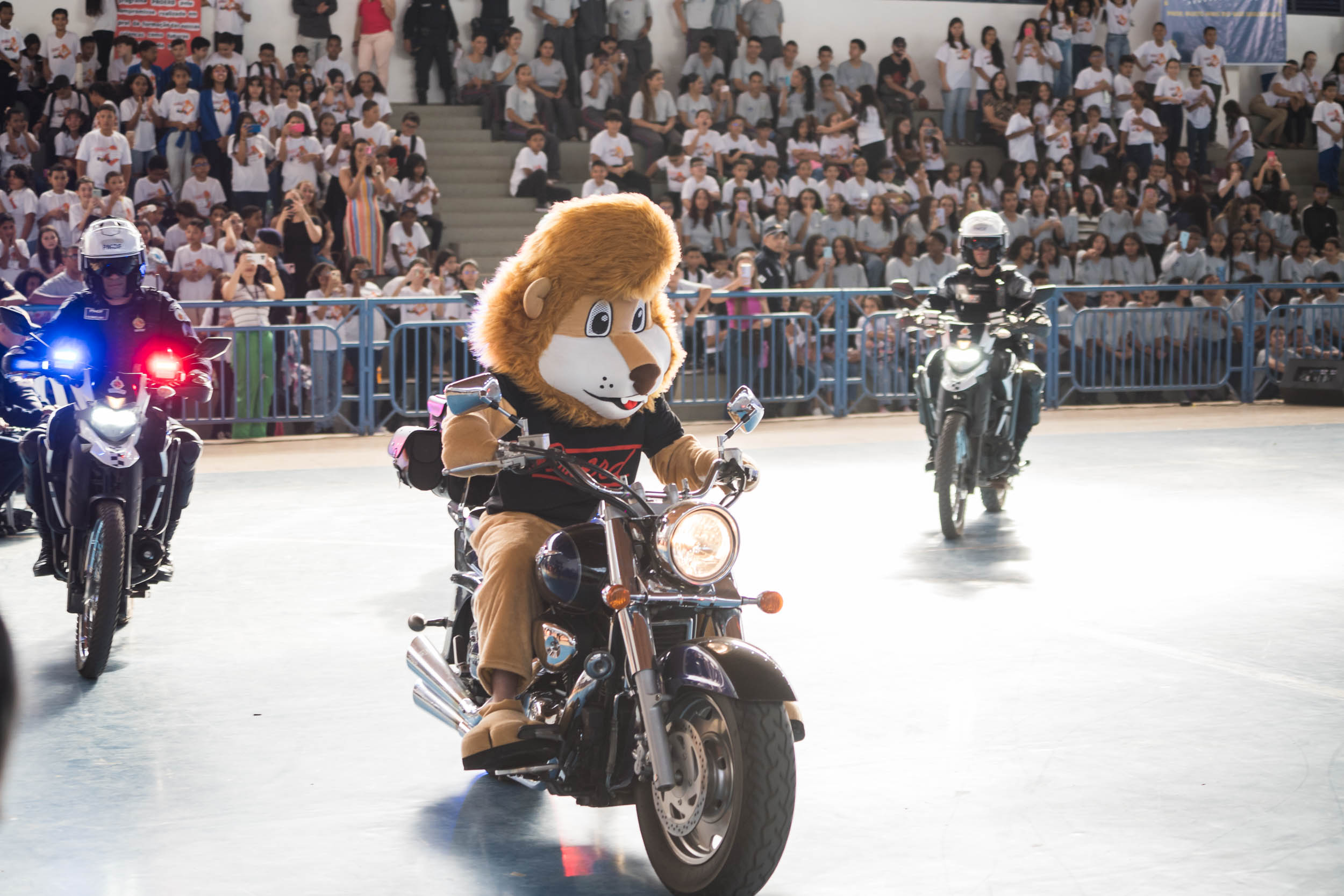 Entre as atrações da cerimônia, a cadela Hera, do Batalhão de Cães da Polícia Militar, cativou os estudantes em uma apresentação, mas o destaque ficou por conta da entrada do mascote Daren em uma motocicleta do Bpesc com policiais.