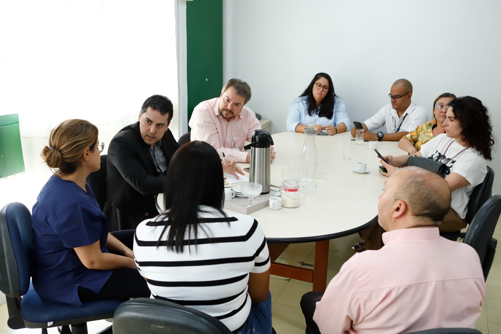 Secretário de Saúde se reuniu com a equipe do hospital para acompanhar os trabalhos da UTI Neonatal| Foto: Jhonatan Cantarelle/Agência Saúde