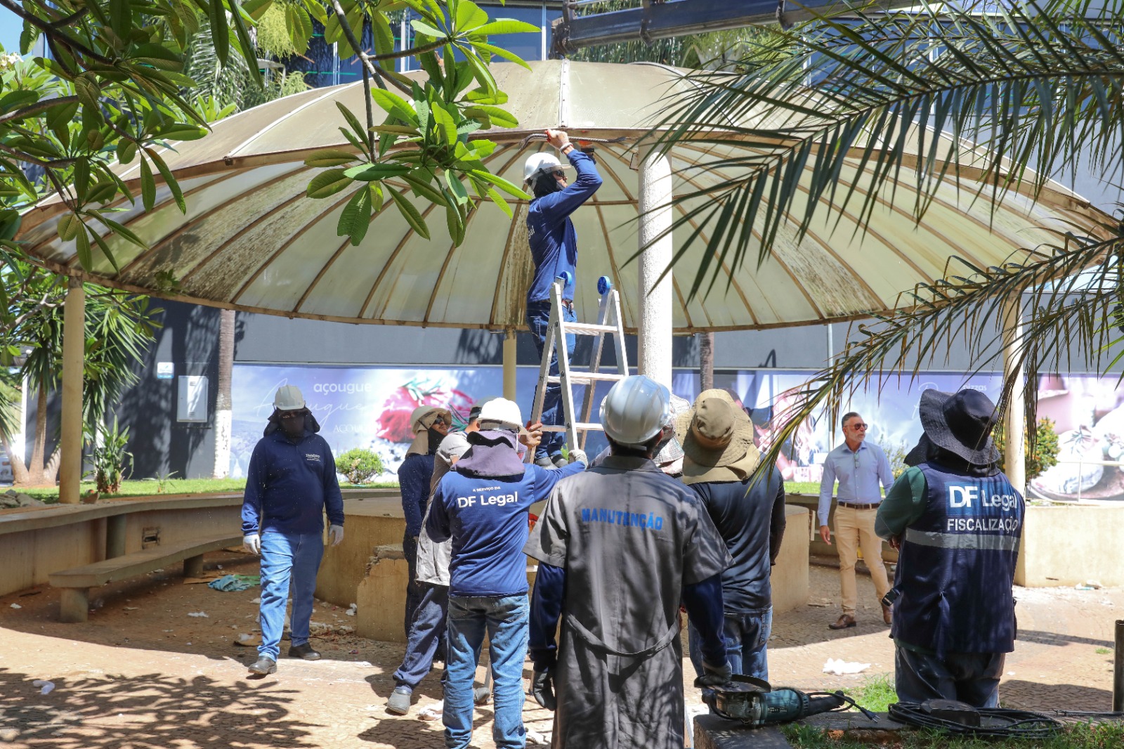 Fase inicial da reforma incluiu a demolição do coreto; materiais da estrutura foram encaminhados para a Unidade de Recolhimento de Entulhos do SLU | Foto: Paulo H. Carvalho/Agência Brasília