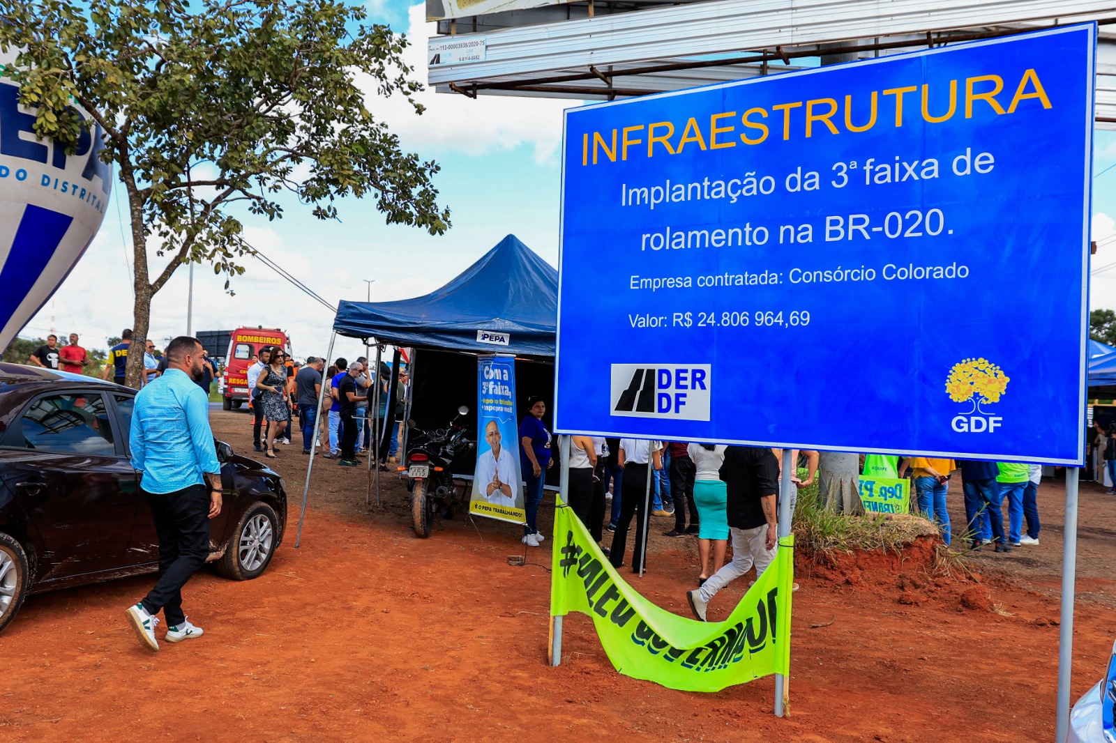 A pavimentação da terceira faixa terá extensão total de 50 km, mas nesta primeira fase serão executados 8,6 km no sentido Sobradinho/ Planaltina e 5,7 km no sentido contrário no trecho entre o Complexo Viário Padre Jonas Vettoraci (viaduto do Comper) e a DF-230. Com a construção, vão ser gerados cerca de 130 empregos. O GDF vai investir parte dos recursos e contará com financiamento do Banco do Brasil, totalizando R$ 24,8 milhões nesta etapa.