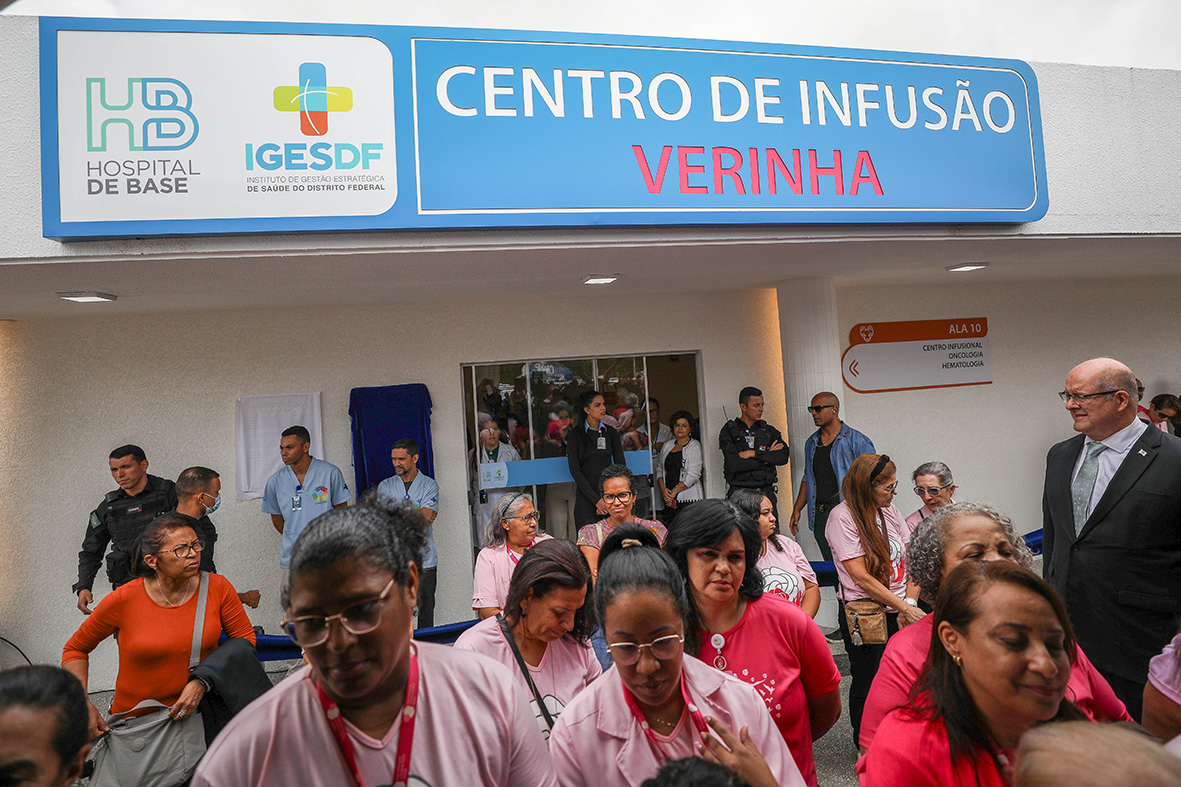 A governadora em exercício Celina Leão entregou, nesta quinta-feira (14), a reforma do Centro de Infusão do Hospital de Base do Distrito Federal (HBDF). O espaço atende pacientes com câncer e doenças hematológicas graves, e passou por reformas para ampliar o atendimento aos pacientes com câncer e doenças hematológicas graves. Com a ampliação do serviço, a unidade que recebe 180 novos pacientes por mês, terá capacidade para aumentar em até 40% o número de horas disponíveis para atendimento. Foram investidos na obra R$ 1,2 milhão oriundos de emenda parlamentar do deputado distrital Roosevelt Vilela.