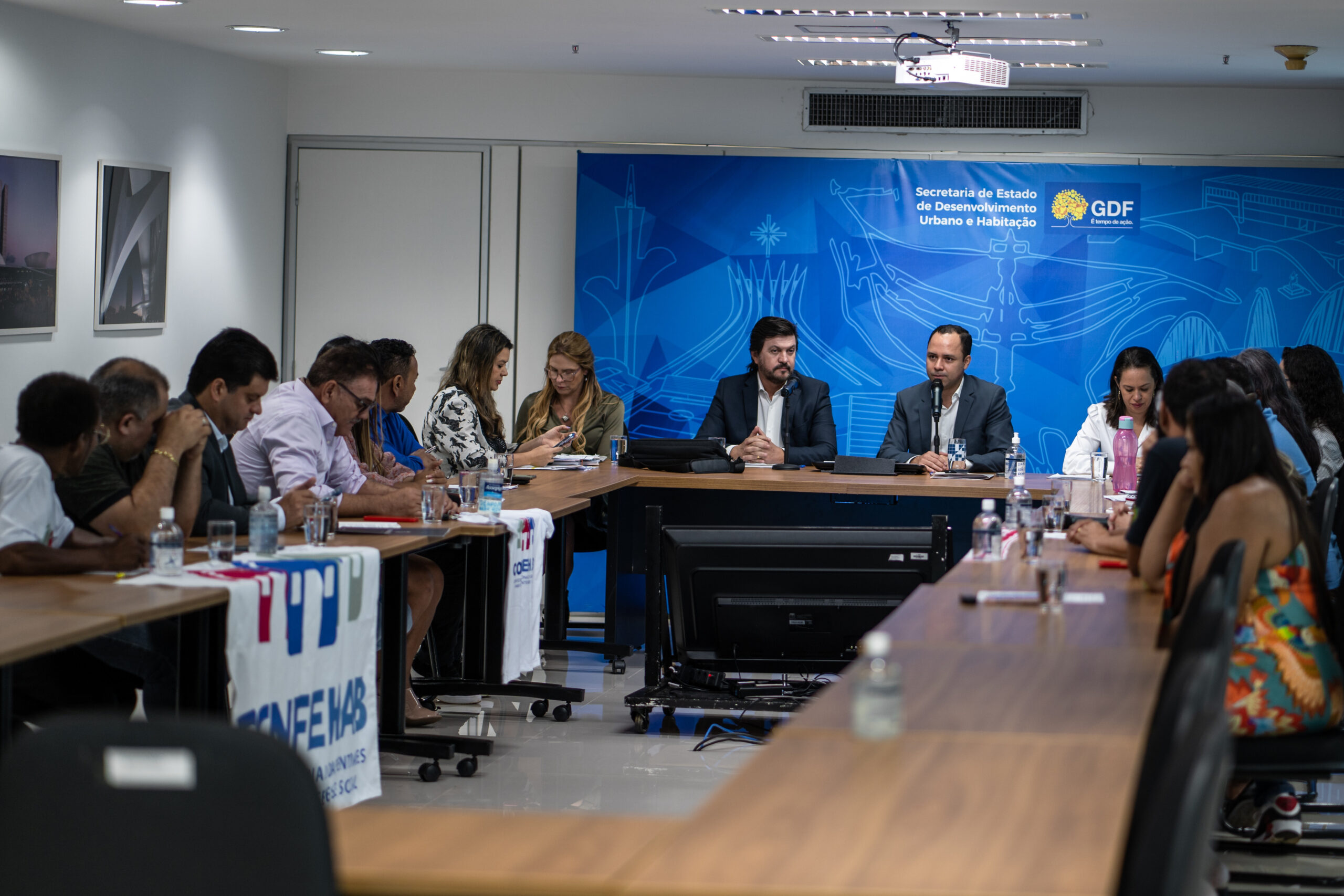 A Secretaria de Desenvolvimento Urbano e Habitação (Seduh) e a Companhia de Desenvolvimento Habitacional do Distrito Federal (Codhab) participaram de uma reunião com representantes de movimentos habitacionais, esta semana. As pastas do Governo do Distrito Federal (GDF) receberam uma pauta com reivindicações para aumentar a oferta de moradia no DF, entre elas, financiamento mais acessível para a população de baixa renda, especialmente em relação à entrada para aquisição do imóvel.