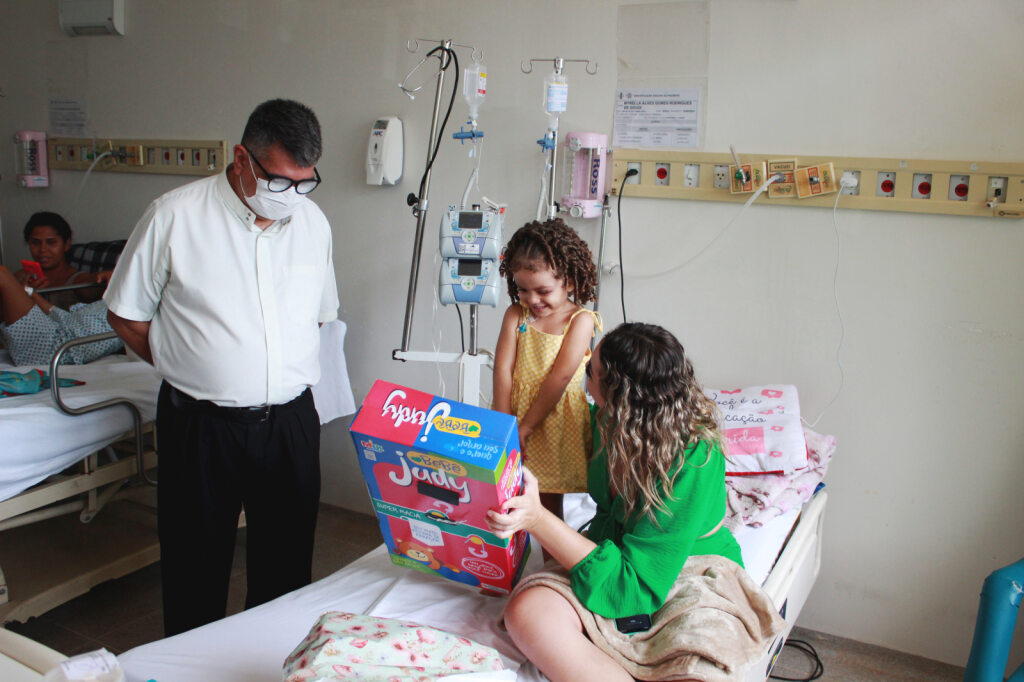 “Queremos fazer um Natal diferente para as crianças que estão internadas e para todos os colaboradores aqui do hospital que estão trabalhando nesta época. Por isso, arrecadamos brinquedos em todas as comunidades e juntos, queremos trazer alegria e esperança para todos, deixando claro que Jesus é o motivo da nossa comemoração”, explica o membro da Pastoral da Saúde da Paróquia Santa Mãe de Deus, Cláudio Sampaio, que fez questão de se vestir de Papai Noel.