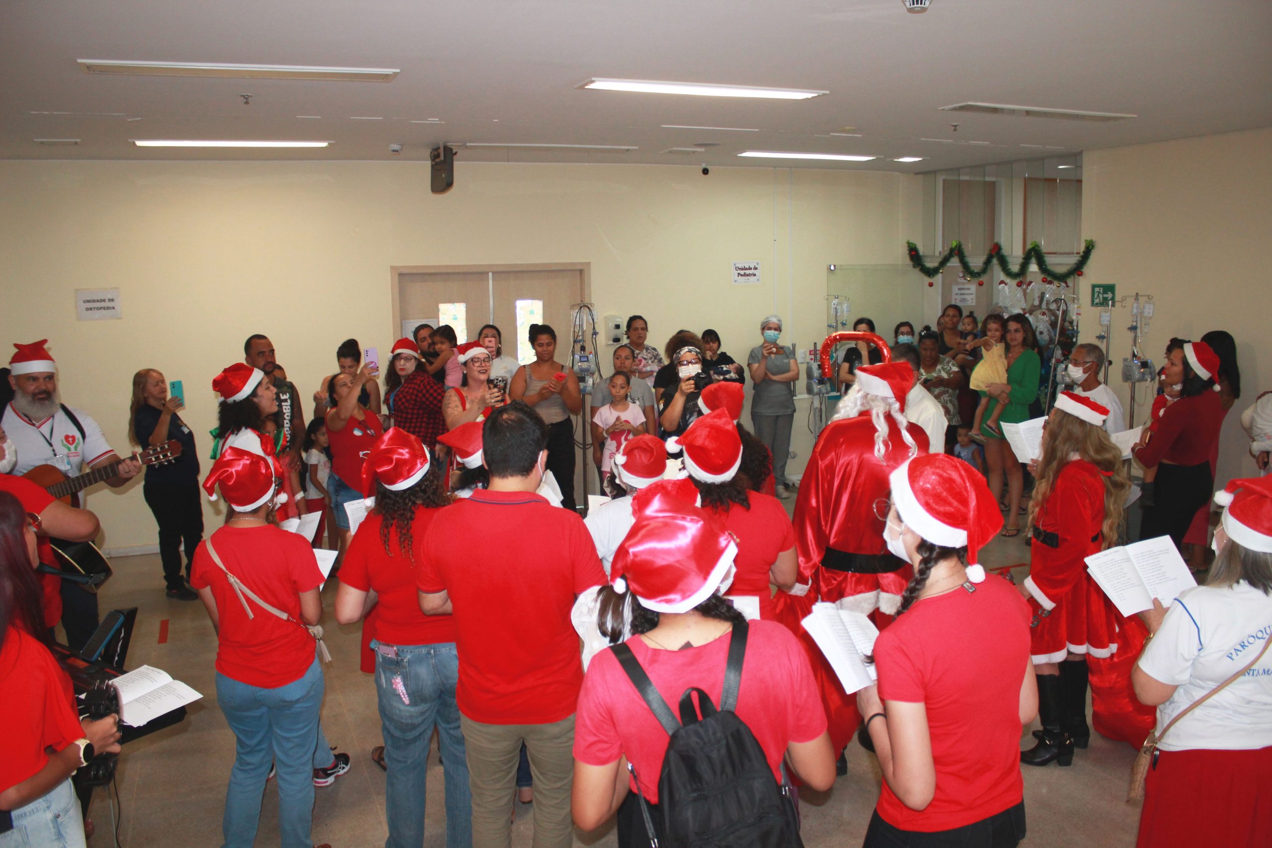 A Cantata de Natal ocorreu no hall da Pediatria, e os membros emocionaram pacientes, acompanhantes e colaboradores cantando um repertório com canções como Noite Feliz, Vem Chegando o Natal e Bate o Sino.