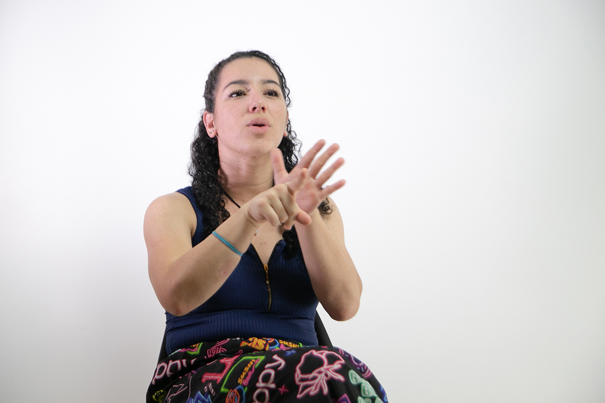 Incomodada com a falta de narrativas audiovisuais que incluíssem a comunidade com deficiência auditiva, a pesquisadora Beatriz Cruz idealizou o Guia de Produção Audiovisual Dirigida por Pessoas Surdas | Fotos: Isabelle Araujo