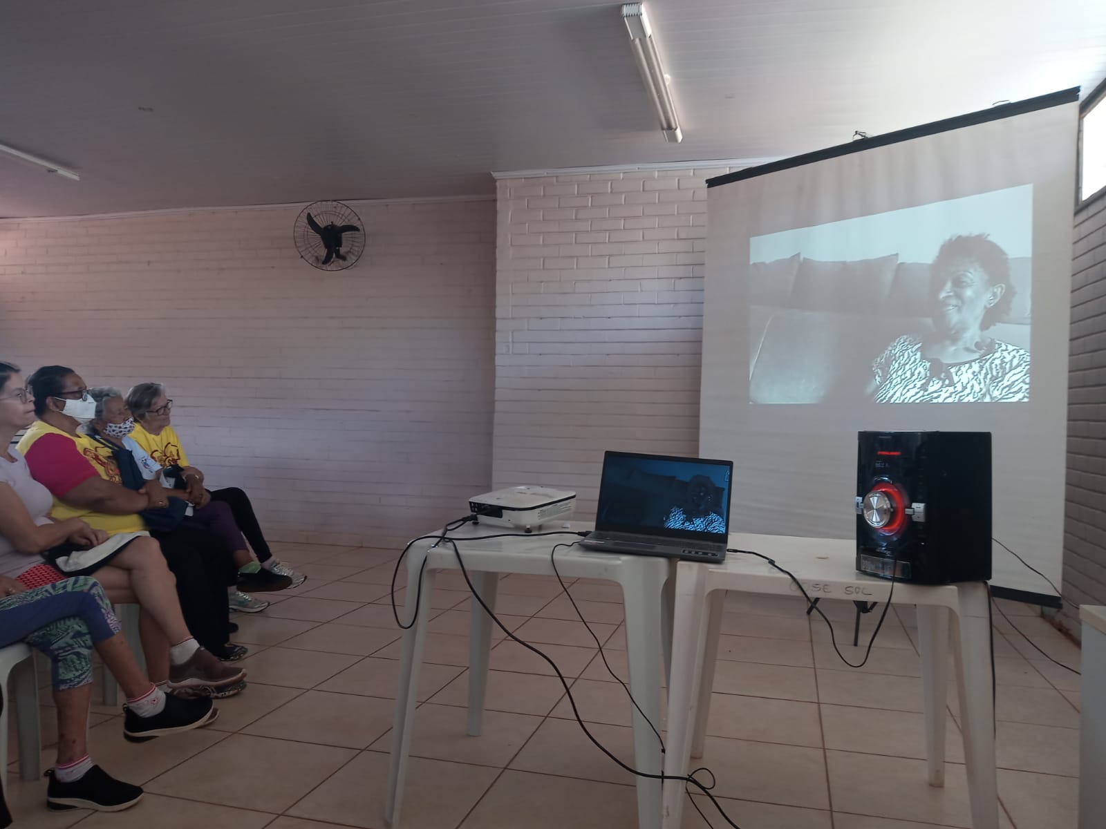 Grupo de idosos atendidos pelo Cecon Gama Sul assiste ao documentário | Foto: Divulgação/Sedes