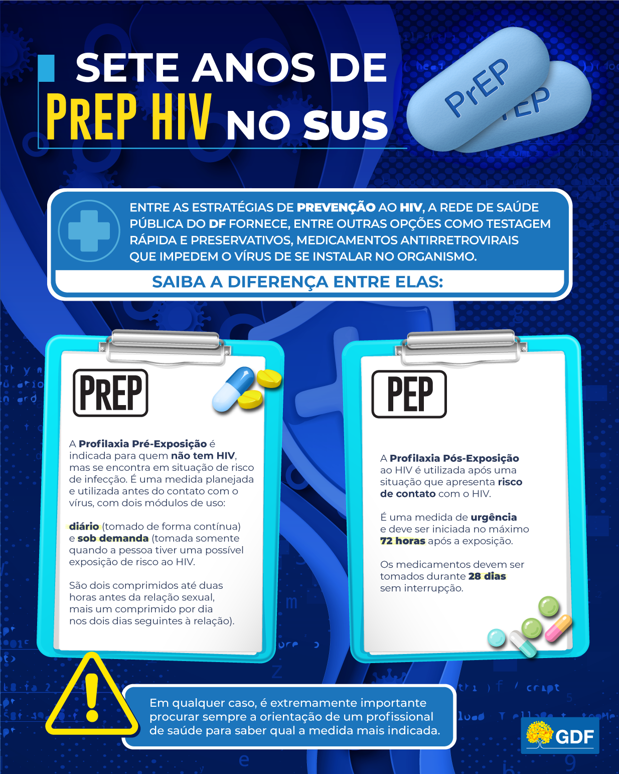 A estratégia de prevenção é eficaz e segura em pessoas com risco aumentado de adquirir a infecção e consiste no uso de medicamentos antirretrovirais (ARV). Disponível gratuitamente na rede pública de saúde desde 2018 em Brasília, a PrEP completa sete anos no Sistema Único de Saúde (SUS) e atualmente pode ser prescrita por qualquer médico ou enfermeiro do DF.
