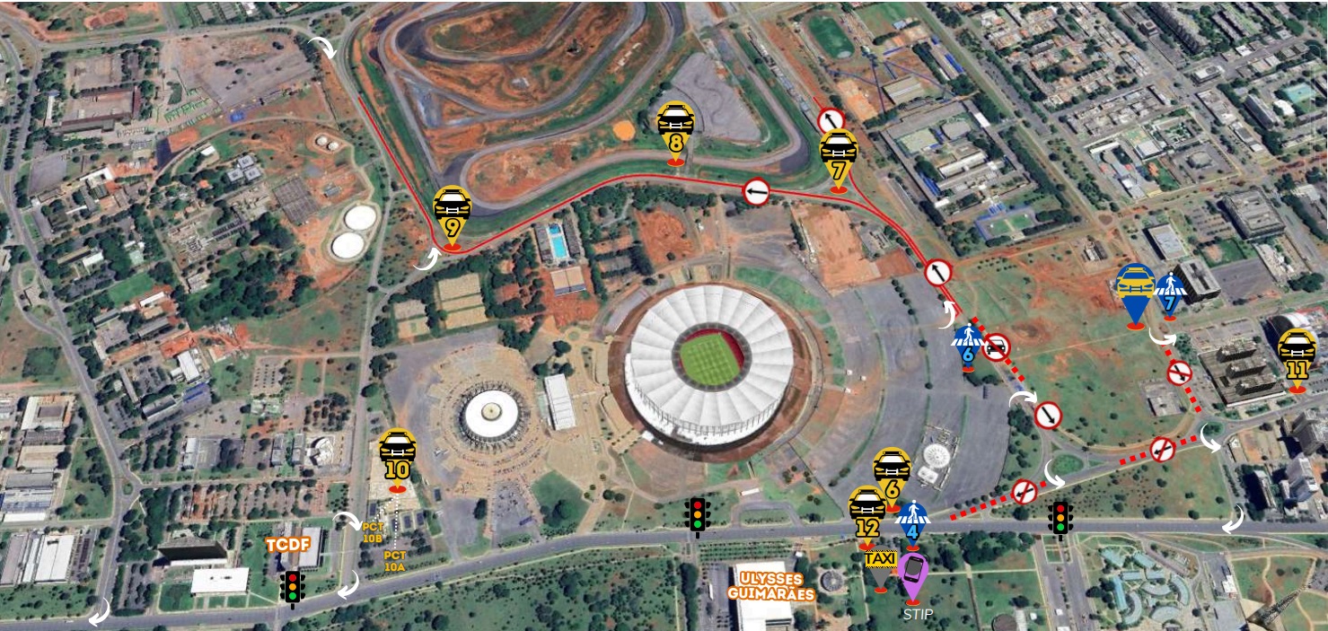 O Detran-DF atuará no controle de tráfego nas imediações da Arena, em pontos fixos e realizando o patrulhamento na região, a fim de melhorar a fluidez, garantir a segurança e coibir infrações. Na segunda-feira (17), os agentes de trânsito deram início a implantação da sinalização viária para evitar estacionamento irregular e orientar condutores e pedestres.