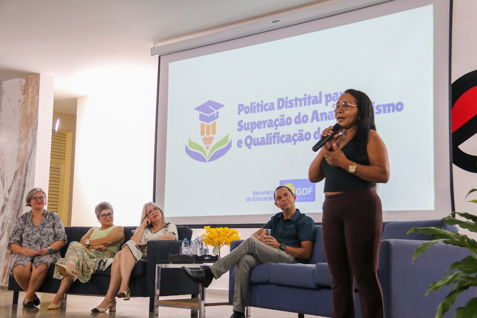 Participaram do evento a secretária de Educação, Hélvia Paranaguá, a subsecretária de Educação Básica, Iêdes Braga, a diretora de Políticas de Alfabetização e Educação de Jovens e Adultos do Ministério da Educação, Ana Lucia Sanches, o professor do Centro Educacional (CED) 04 do Guará, Alessandro Reis e a estudante da EJA e egressa do programa DF Alfabetizado, Maria dos Remédios da Silva.