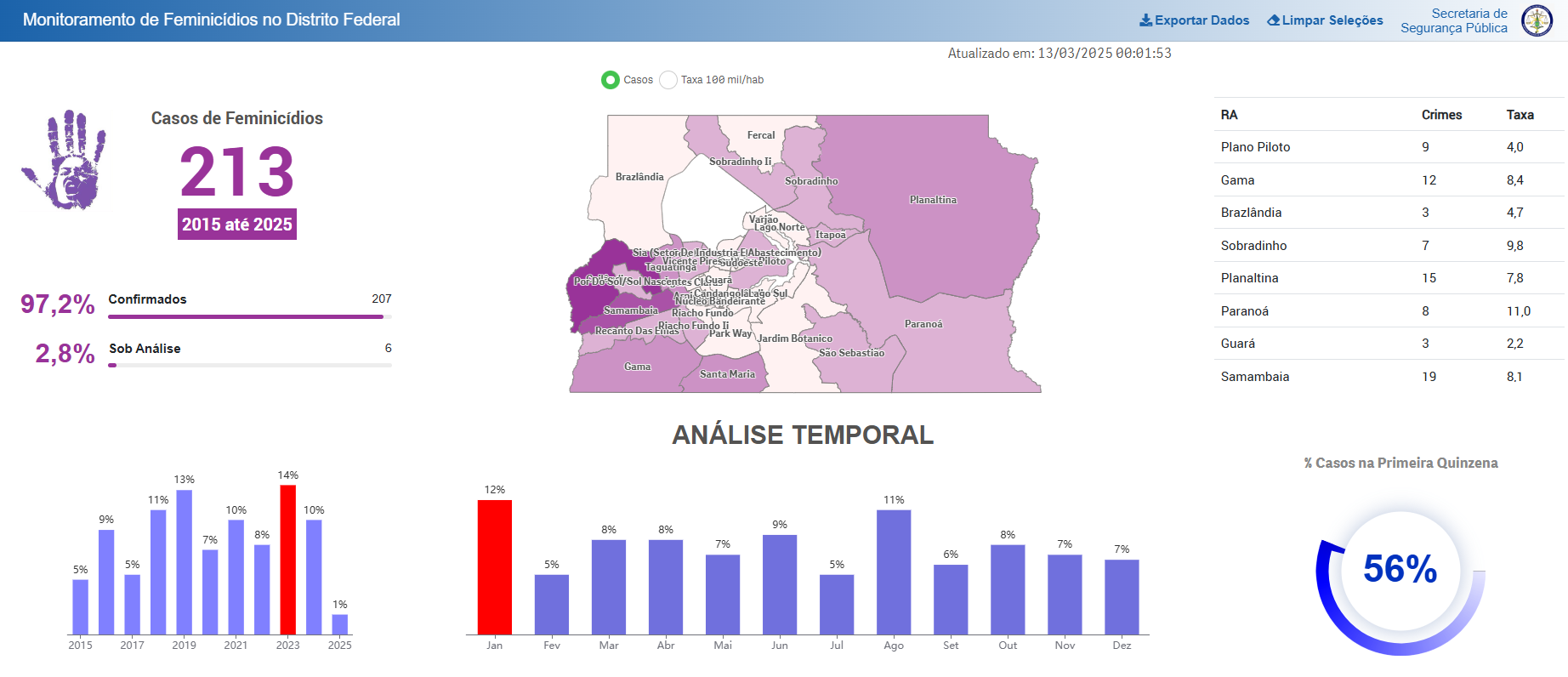 O enfrentamento à violência contra a mulher é uma pauta prioritária do Governo do Distrito Federal e a transparência e a precisão dos dados sobre feminicídios são essenciais para o fortalecimento de políticas públicas cada vez mais eficazes. No Distrito Federal, a Secretaria de Segurança Pública (SSP-DF) tem um papel crucial na divulgação dessas informações, por meio do Painel de Feminicídios e dos relatórios elaborados pela Câmara Técnica de Homicídios e Feminicídios.