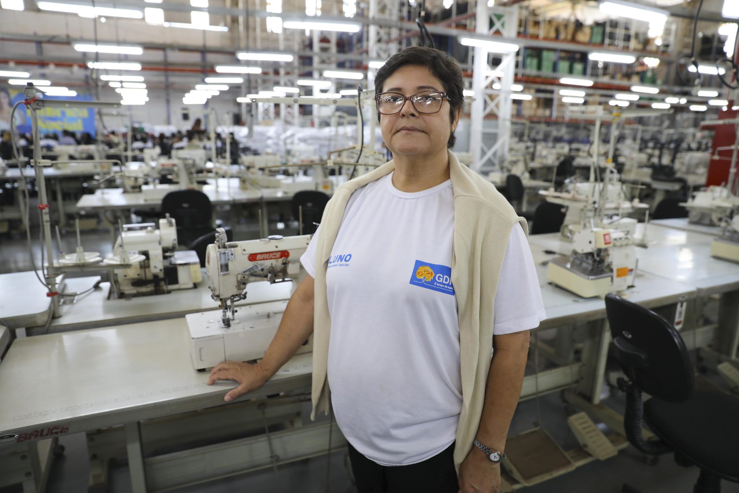 Neuza Ferreira Brito, 53 anos, também aprendeu um novo ofício. Foi entre as máquinas de costura e as colegas de projeto que ela encontrou forças para superar desafios emocionais, incluindo a depressão.