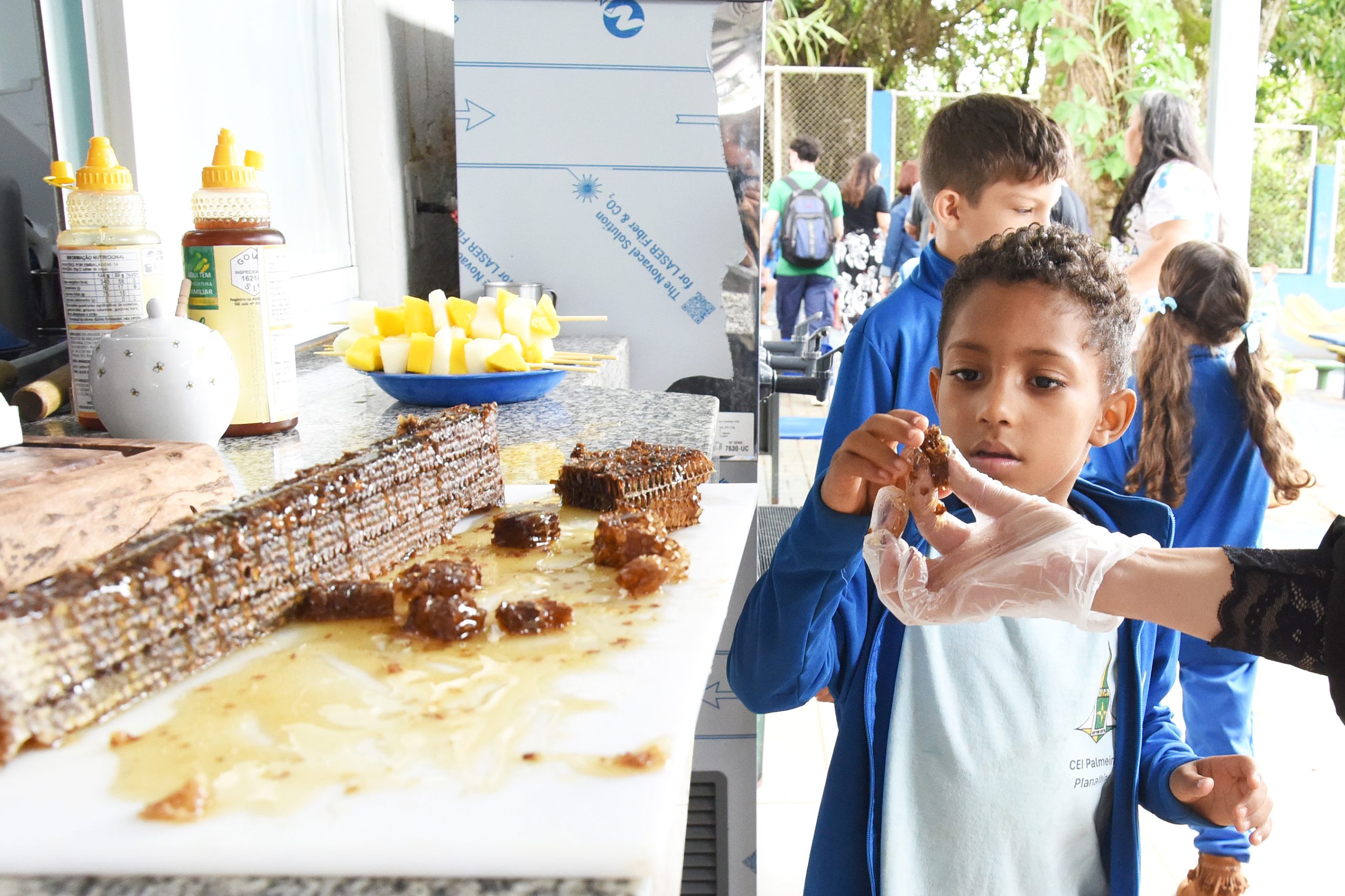 Estudantes também tiveram a oportunidade de experimentar o favo do mel. A iguaria já está em fase de avaliação e pode tornar-se uma alternativa natural e mais saudável ao açúcar