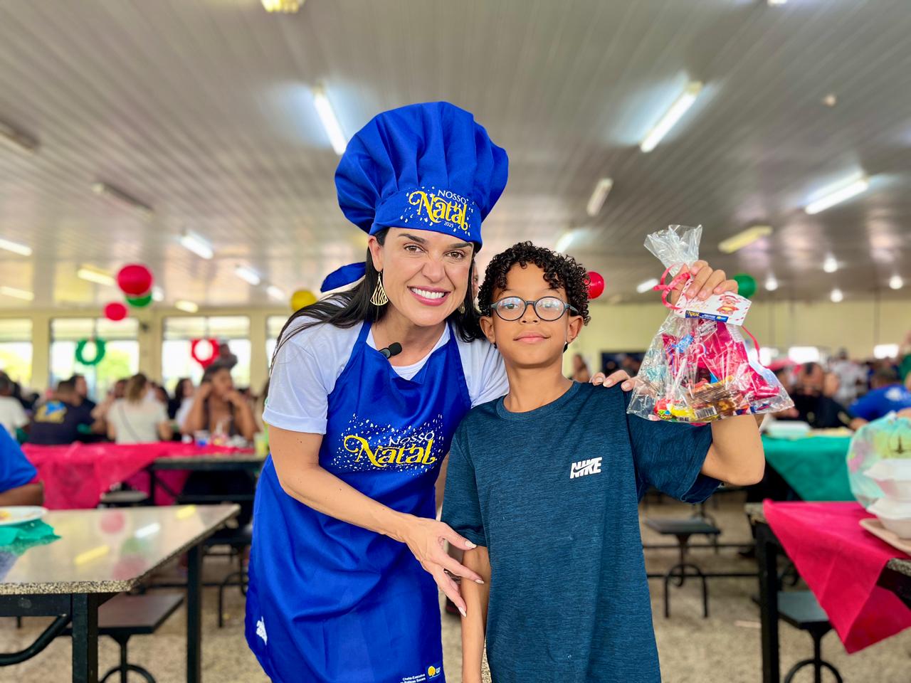 Além da ceia, a programação contou com a presença do Papai Noel, cama elástica para as crianças, vacinação e música ao vivo, transformando o espaço em um ambiente de celebração. O almoço foi servido das 11h às 14h, com um cardápio especial que incluiu pernil suíno assado ao molho Califórnia, com opção de coxa e sobrecoxa ao molho de ervas, arroz, feijão carioca, farofa natalina, salada tropical e, como sobremesa, bombom e suco de abacaxi com hortelã.