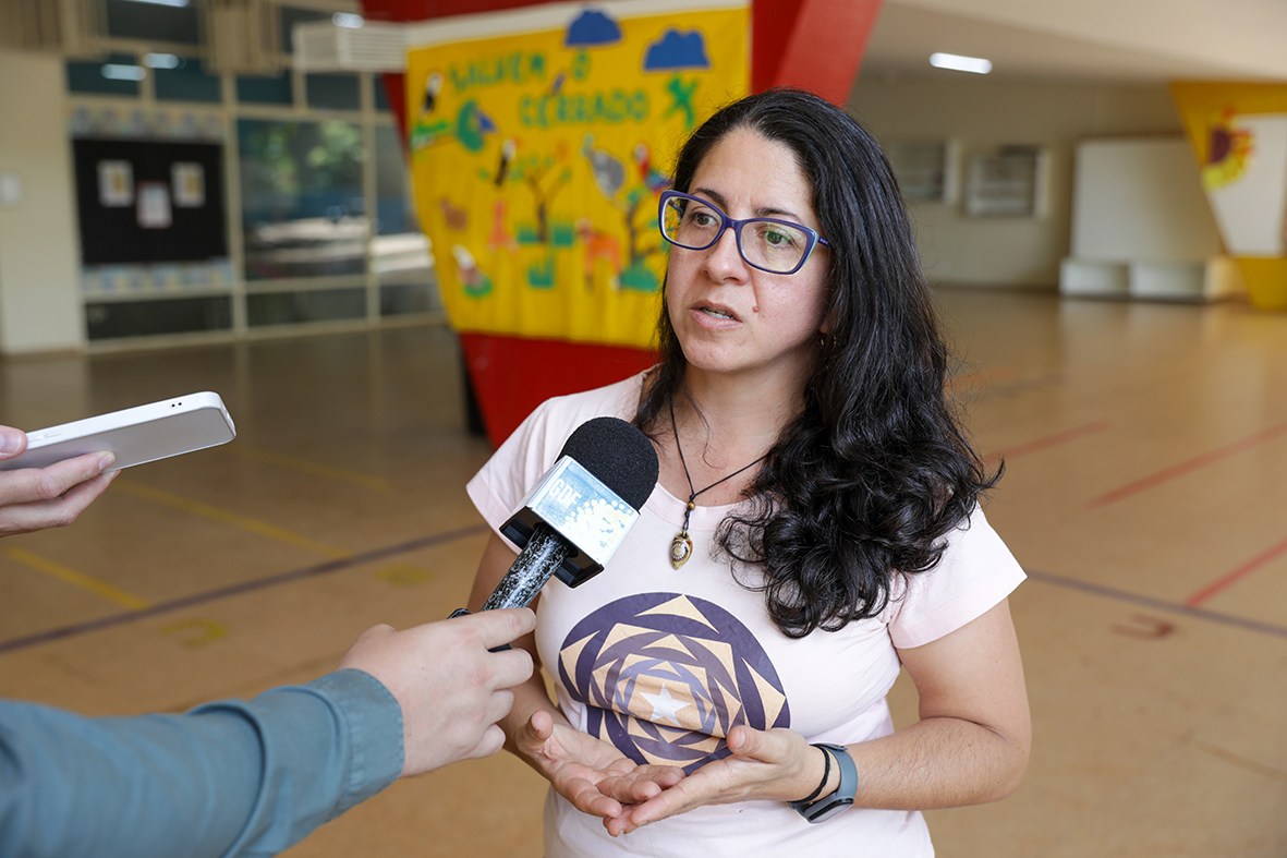 Mariana Mesquita, supervisora pedagógica e professora de música: “Esse espaço é incrível, com jardim, piscina, quadras ao ar livre, teatro, as salas grandes, espaçosas… A gente tem uma arquitetura fantástica. Tudo isso é inspirador”