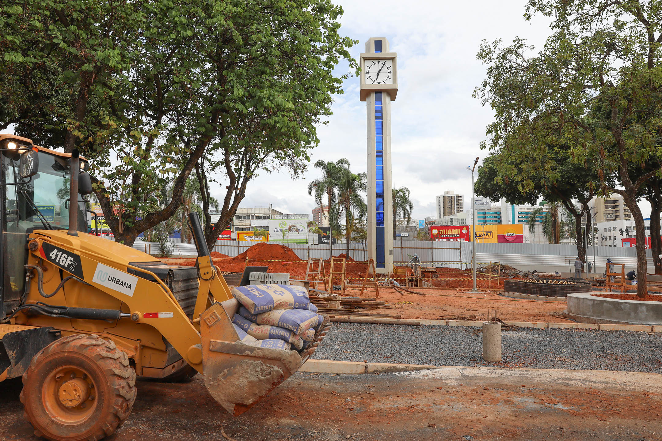 As equipes do Governo do Distrito Federal (GDF) seguem com as obras de renovação da Praça do Relógio, em Taguatinga. Na última semana ocorreu a concretagem das paredes da casa de máquinas e atualmente as equipes trabalham na laje, nas calçadas e no paisagismo de um dos espaços mais icônicos do Distrito Federal. Para a reforma no local, o governo investe aproximadamente R$ 6 milhões.