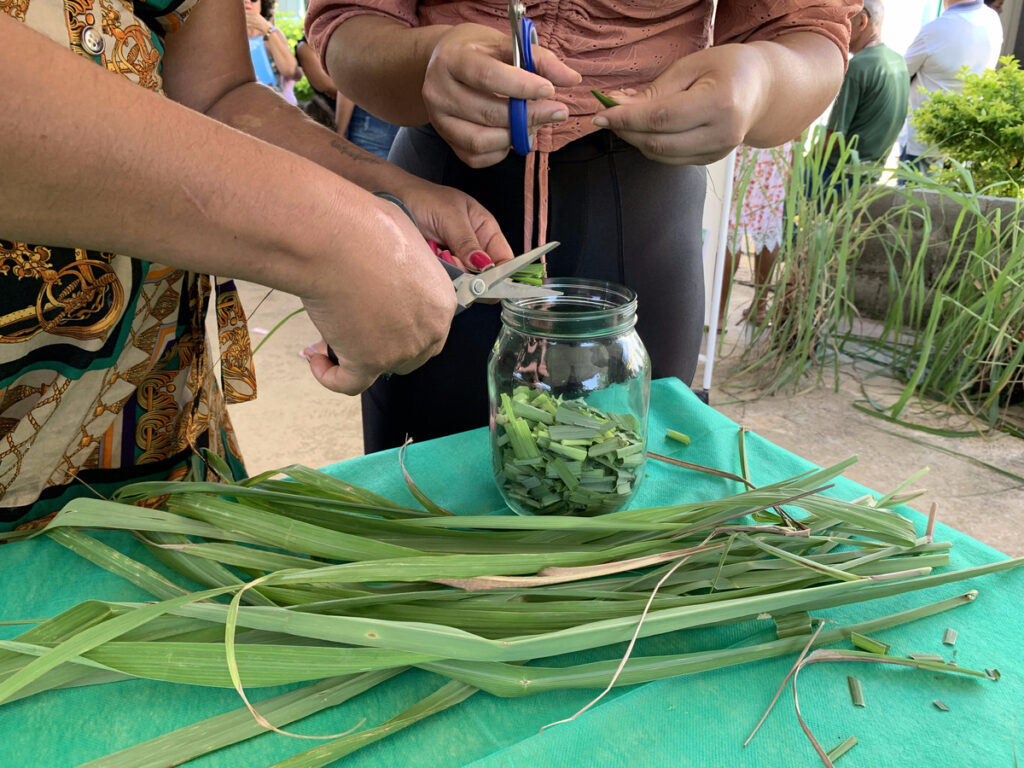 “Não sabia que havia preparo natural contra o mosquito da dengue. Agora vou usar sempre”, diz a diarista Camila Nascimento, participante da oficina