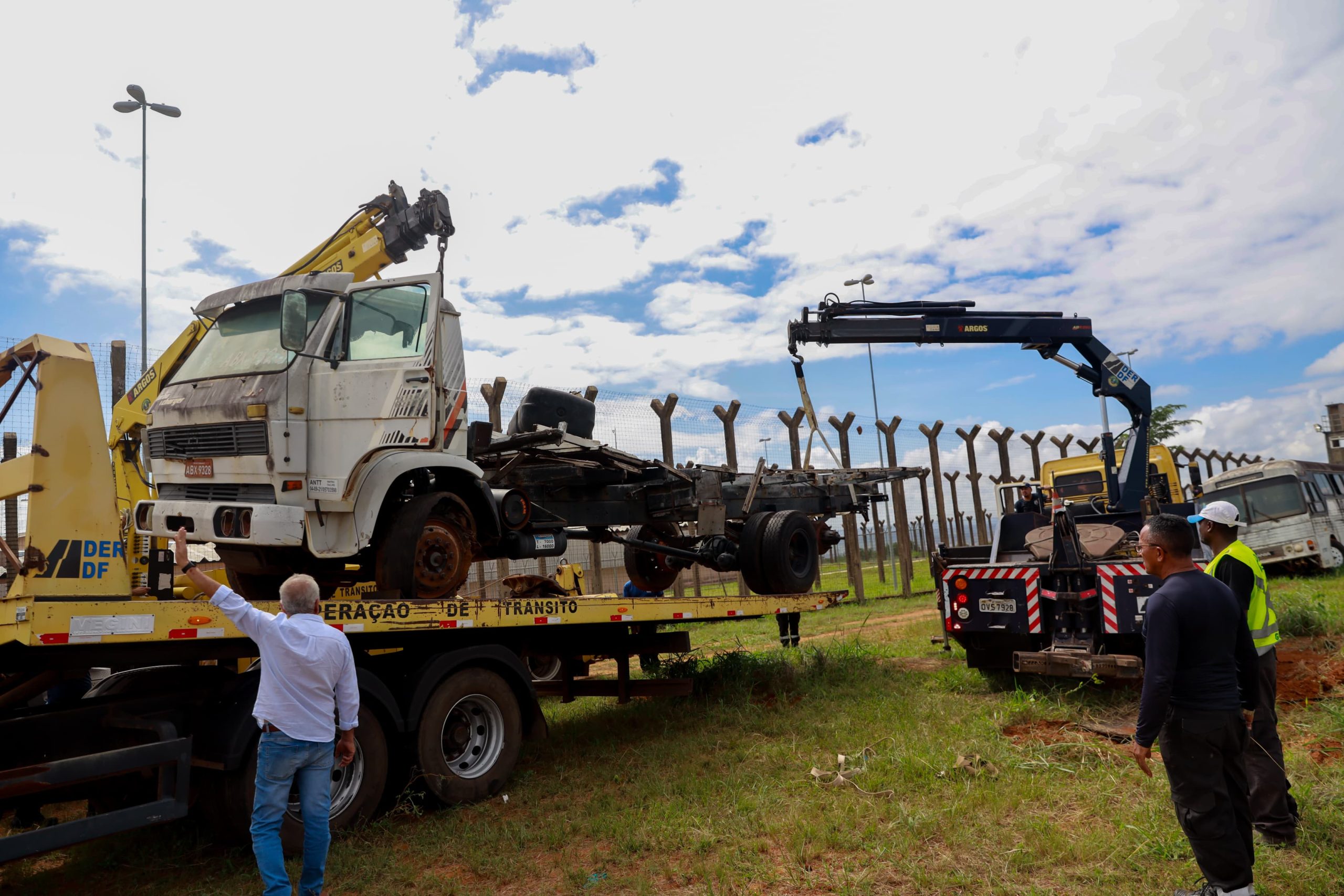 Após solicitação da Secretaria de Administração Penitenciária (Seape), as equipes, coordenadas pela Secretaria de Segurança Pública do DF (SSP-DF), estiveram na Papuda e retiraram dois caminhões e três ônibus que estavam sem condições de uso e estacionados ali há mais de 15 anos.
