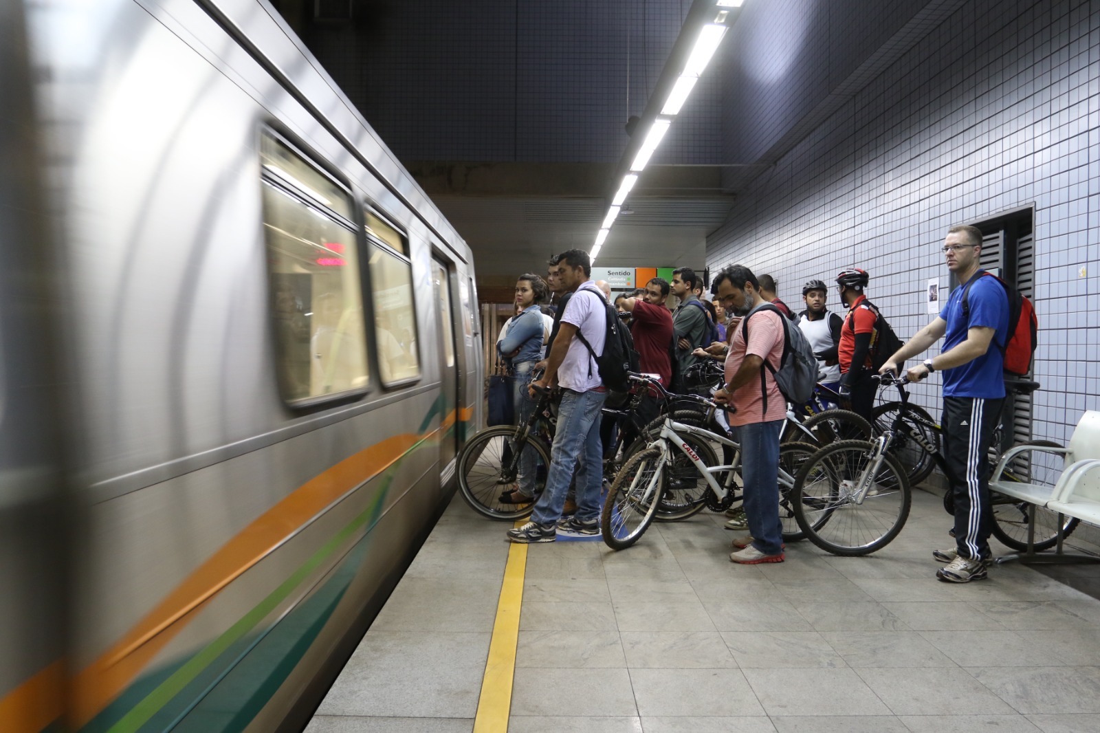 Em dias úteis, o transporte de bicicletas e similares deve ser realizado no último carro do trem, sendo permitida apenas uma bike por usuário; nos finais de semana, não há limitação | Foto: Paulo Barros/Metrô-DF