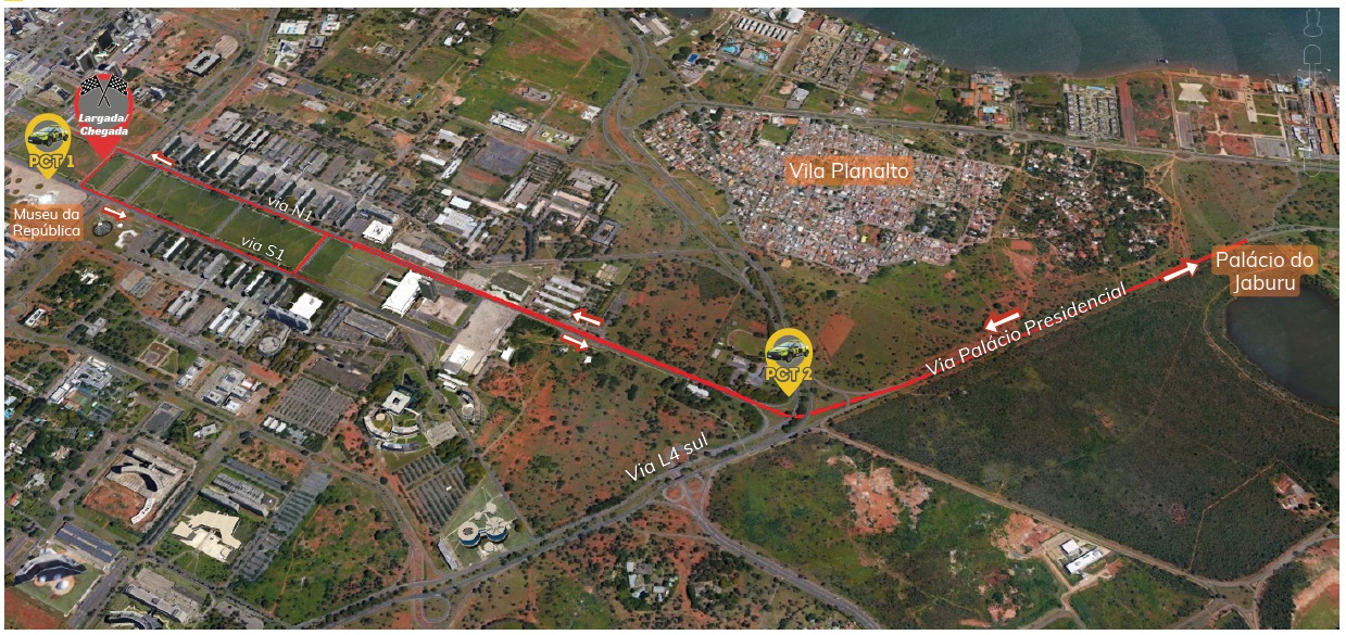 Para garantir a segurança dos atletas, a entrada e a saída do estacionamento da Catedral será feita pelo túnel da Cúria, pela via S2. A saída do túnel do Itamaraty para a via S1 e o acesso da L4 para a via N1 ficarão fechados. A via Palácio Presidencial, na altura do Palácio do Jaburu, terá compartilhamento entre os atletas e os veículos. Na via N1, a faixa mais à direita, a partir do Corpo de Bombeiros, será destinada à saída de veículos de emergência e oriundos dos ministérios. As demais faixas serão utilizadas pelos atletas.