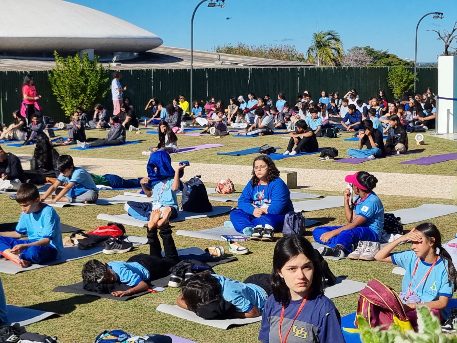 Estudantes participaram de momentos de meditação e de introdução às práticas de yoga | Foto: Divulgação/Brasília Ambiental