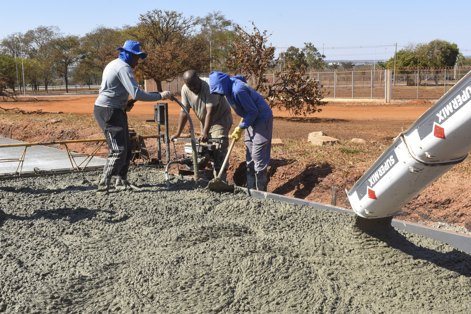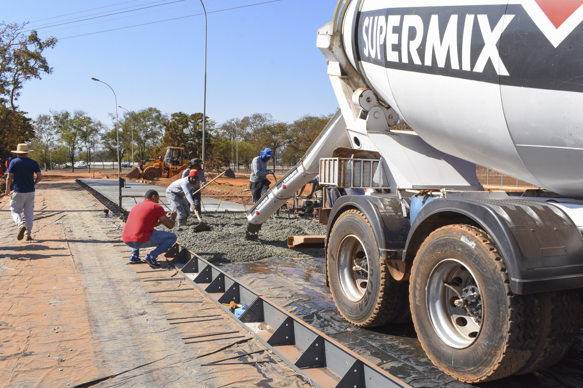 No momento, as equipes trabalham na aplicação do pavimento rígido em concreto. A próxima etapa é dar início à instalação de meios-fios e bocas de lobo, e, em seguida, realizar o encaixe que liga a obra da Rodoviária com o Setor Policial.