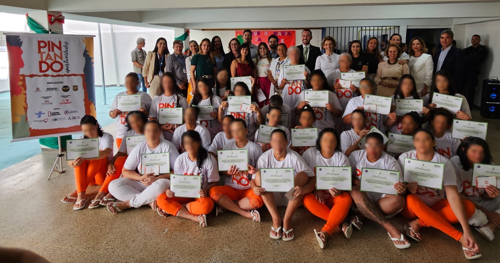 Na quarta-feira (6), a Penitenciária Feminina do Distrito Federal (PFDF) realizou a solenidade de formatura de 40 reeducandas que concluíram o curso de pintura predial pelo projeto “Pintando Oportunidades”. Uma parceria inédita entre a Secretaria de Administração Penitenciária do Distrito Federal (Seape-DF), o grupo Mulheres do Brasil, e o Serviço Nacional de Aprendizagem Industrial do DF (Senai-DF), proporcionou a capacitação profissional para custodiadas do regime fechado e semiaberto, abrindo portas para a reinserção no mercado de trabalho da construção civil.